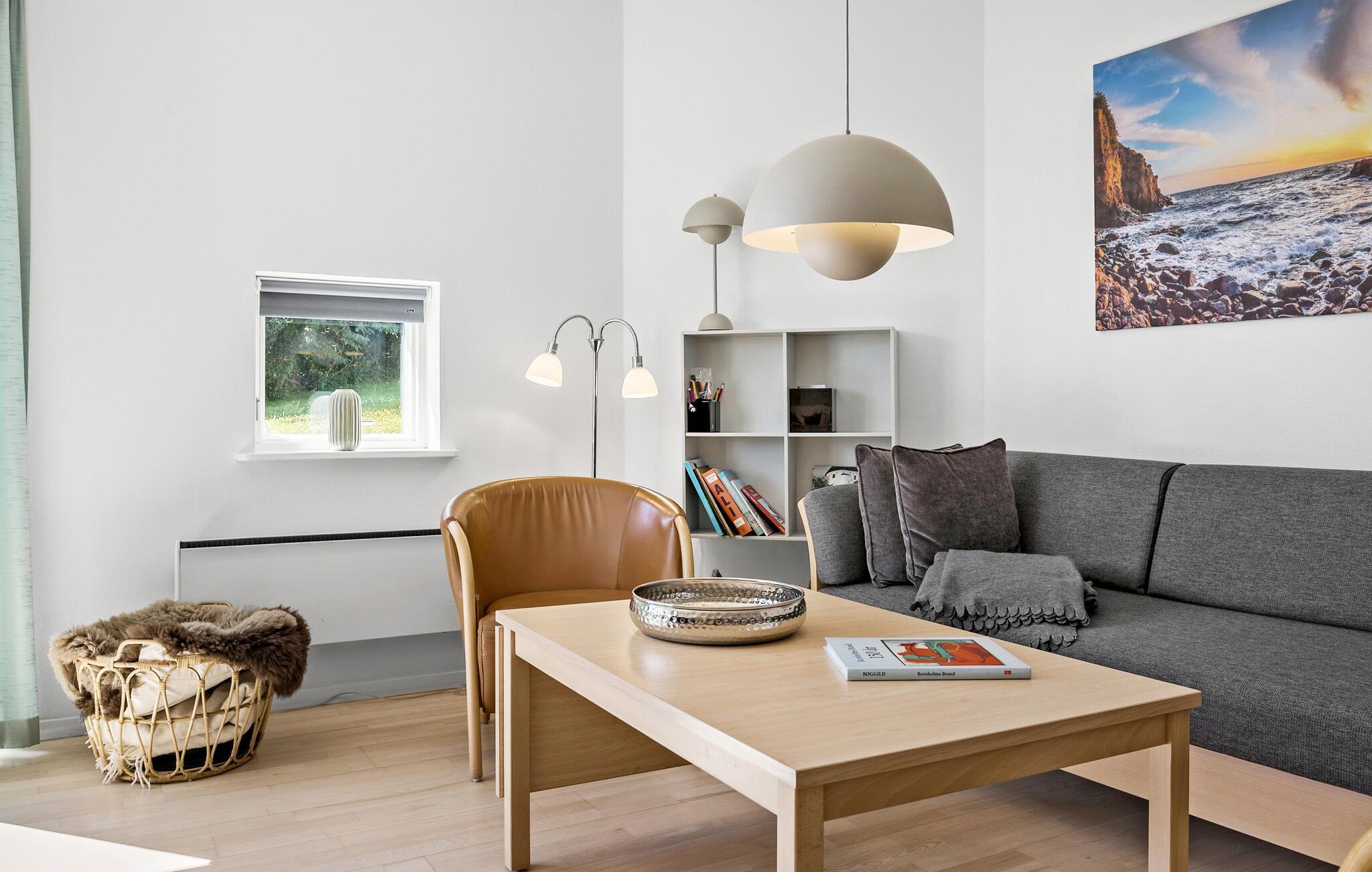 Moderne Ferienwohnung in Gudhjem mit Meerblick, Terrasse und kinderfreundlicher Anlage.