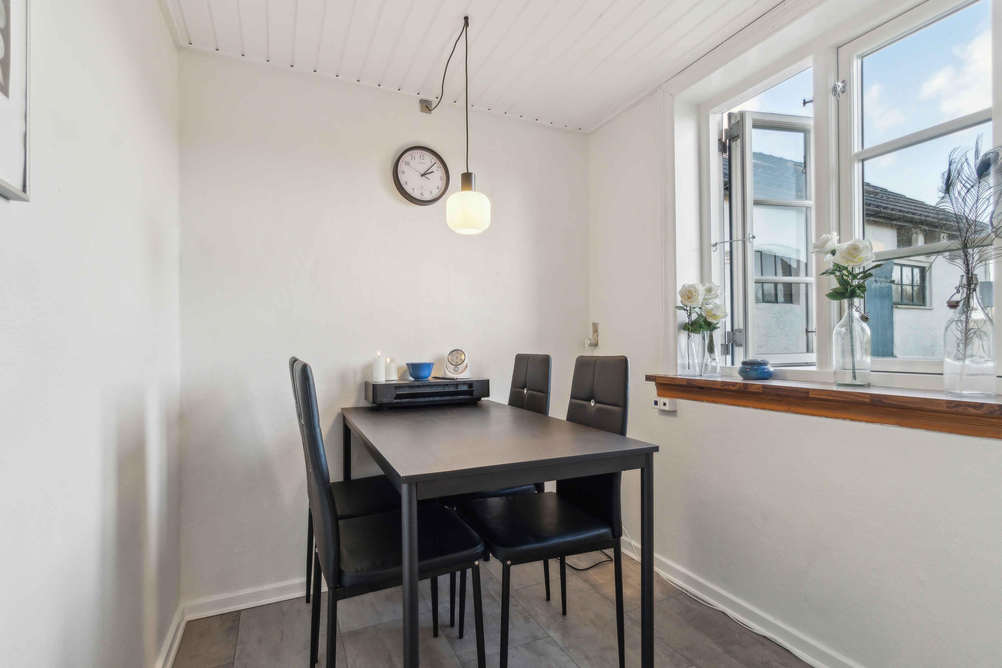 Dieses geräumige Ferienhaus mit 122 m² bietet einen erholsamen Urlaub in ruhiger Umgebung. Mit drei Schlafzimmern und sechs Schlafplätzen gibt es ausreichend Platz für die ganze Familie. Das offene Wohnzimmer schafft einen gemütlichen Treffpunkt mit Kaminofen und Wärmepumpe, die das ganze Jahr über für Komfort sorgen. Internetzugang ermöglicht es, bei Bedarf online zu bleiben. Der Außenbereich lädt zum Spielen und Entspannen ein und bietet viel Platz rund ums Haus. Kinder können sich austoben, während Erwachsene die Ruhe auf der Terrasse genießen. Die Umgebung hält zahlreiche Erlebnisse bereit. Nur vier Kilometer entfernt liegt das Meer mit wunderschönen Küstenlandschaften, ideal für Spaziergänge, Baden und Angeln. In der Nähe gibt es eine charmante Stadt mit gemütlichen Cafés, Kunsthandwerksläden und Spezialitätengeschäften. Probieren Sie lokale Köstlichkeiten und erleben Sie die authentische Atmosphäre. Naturliebhaber können Wander- und Radwege erkunden, die durch die einzigartige Landschaft Bornholms führen. Felsenküsten, Wälder und Felder bieten eine abwechslungsreiche Erfahrung. Eine ideale Wahl für alle, die einen Urlaub mit Ruhe, Naturerlebnissen und lokalen Attraktionen in greifbarer Nähe suchen.