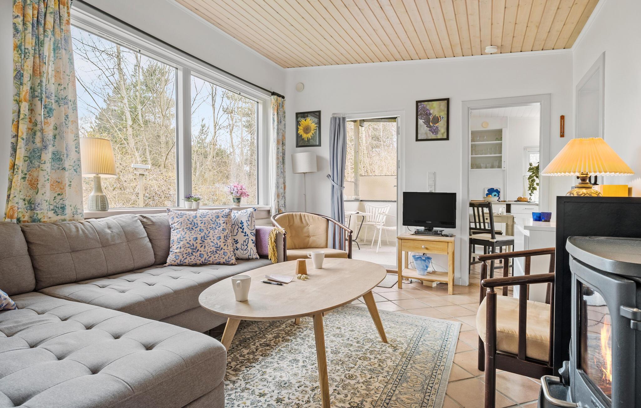 Dieses kleine, angenehme Ferienhaus mit Kaminofen bietet Ihnen eine behagliche Atmosphäre für entspannte Tage. Vom lichtdurchfluteten Wohnzimmer gelangen Sie direkt auf die überdachte Terrasse, die ideal ist, um den Morgenkaffee in der frischen Seeluft zu genießen. Die praktische Einrichtung und der offene Wohnraum machen es einfach, die Zeit mit Familie oder Freunden in vollen Zügen zu genießen. Nach einem Tag an der frischen Luft lädt Sie der Kaminofen zu gemütlichen Abenden ein.