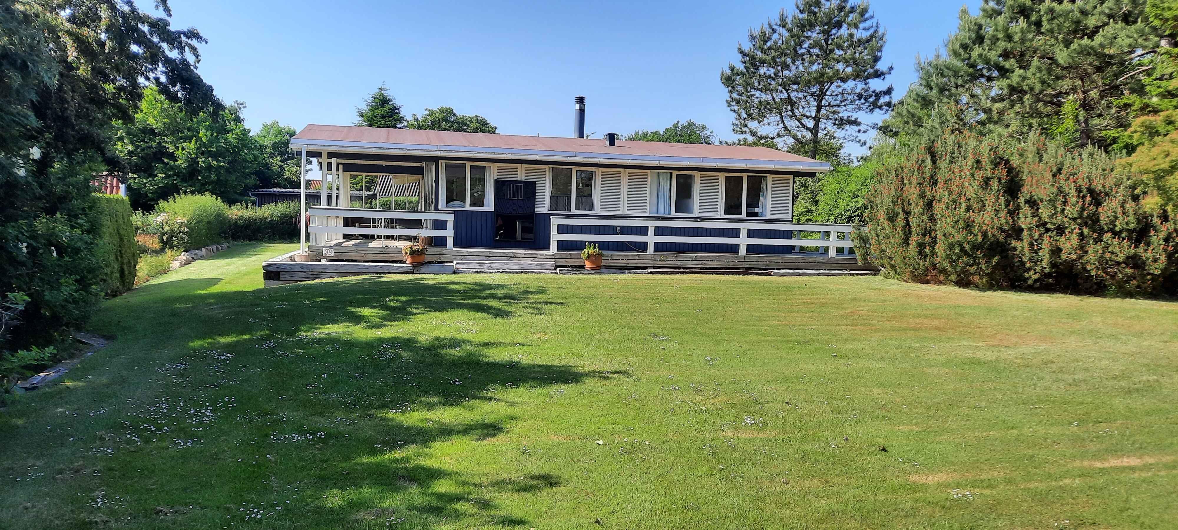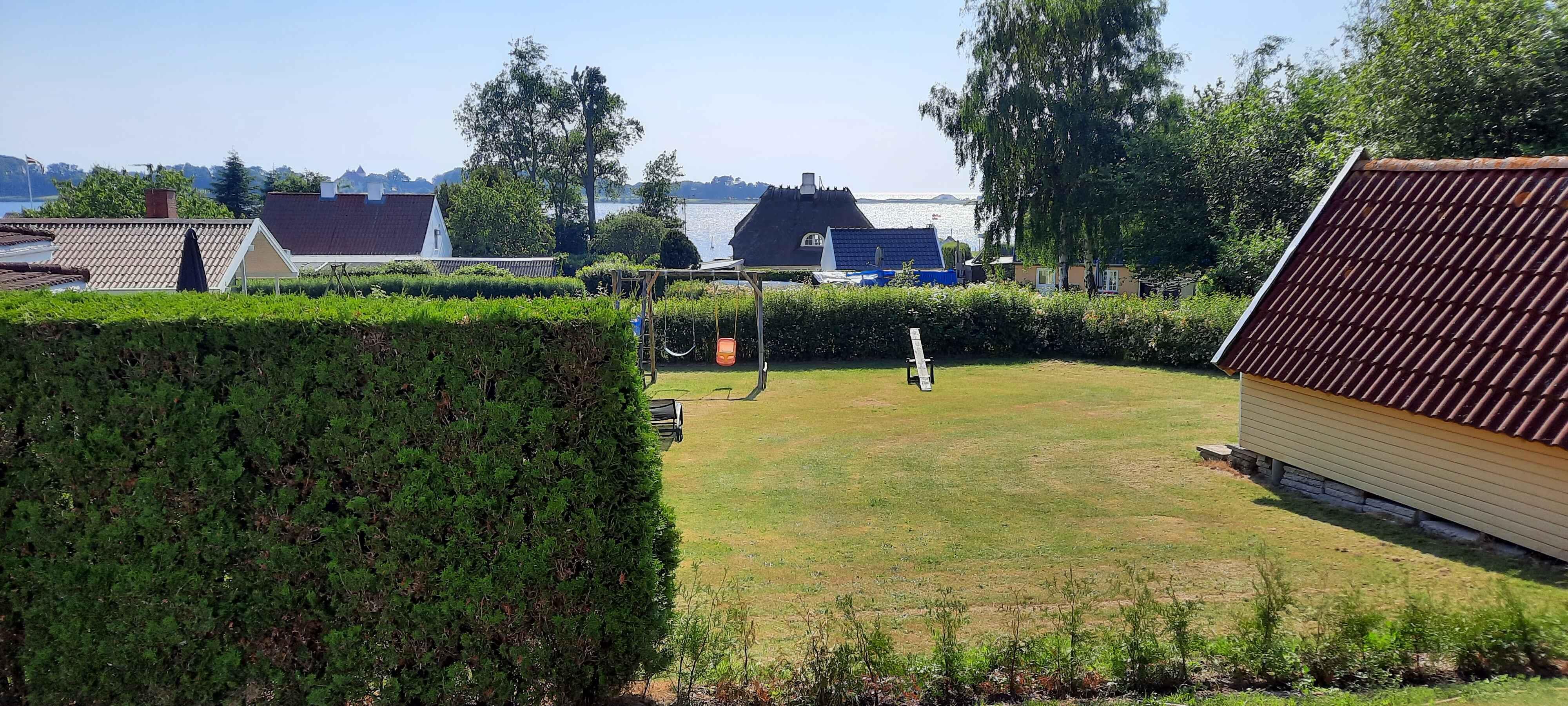 Gemütliches Holzhaus in ruhiger Lage mit Wasserblick und schönen Sonnenuntergängen. Holzterrasse rund ums Haus. Außendusche. 1 km zum Badestrand im Kleinen Belt. Schöne Wanderwege in der Nähe.