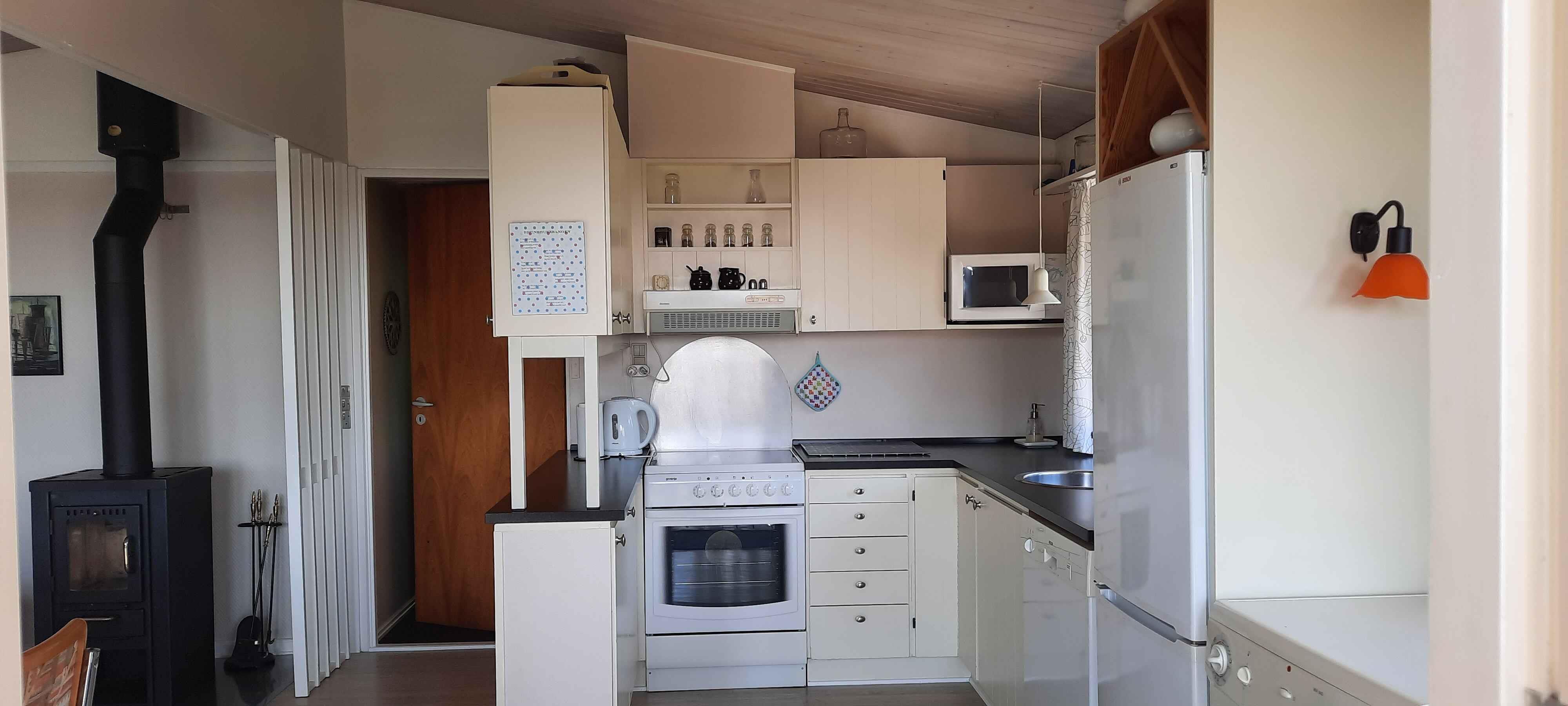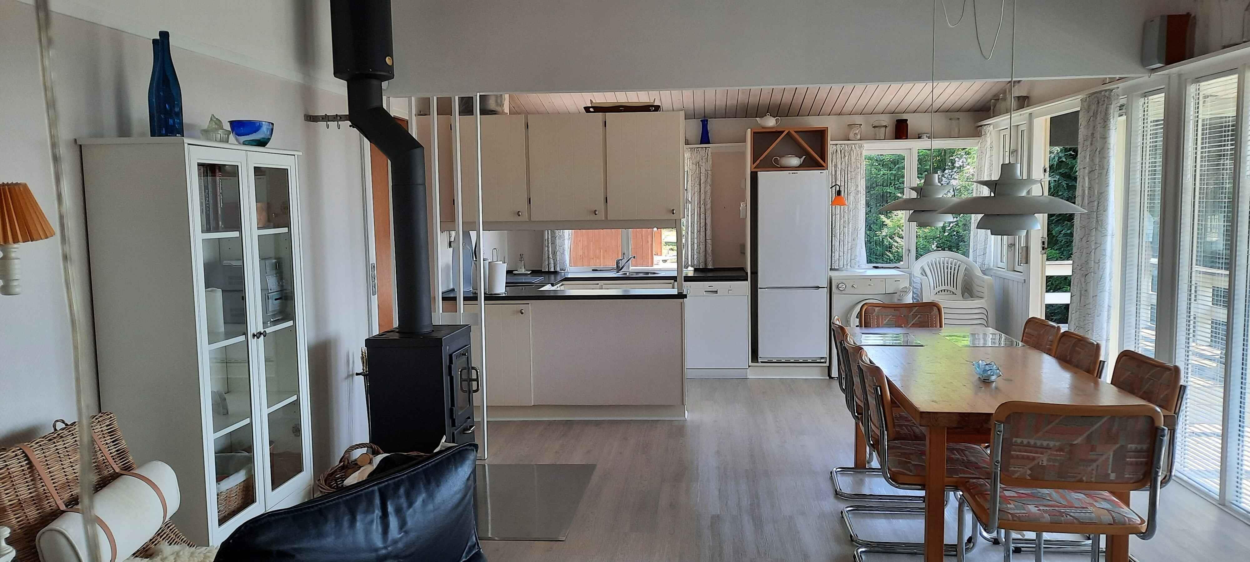 Dieses Ferienhaus eignet sich perfekt für einen erholsamen Urlaub in der Natur mit viel Platz für gemeinsames Beisammensein. Es verfügt über drei Schlafzimmer und sechs Schlafplätze auf 92 m². Die Einrichtung ist schlicht und funktional – ideal zum Entspannen und Essen mit Familie oder Freunden. Der Wohnbereich ist das Herzstück des Hauses. Hier verbinden sich Kaminofen, Essplatz und Küche, große Fenster bieten einen Blick aufs Wasser. Bei Sonnenuntergang öffnet sich der Blick zum Horizont und in den Himmel. Eine Holzterrasse umgibt das gesamte Haus und ermöglicht es, der Sonne den ganzen Tag zu folgen. Es gibt Rückzugsorte sowie Platz für Aktivitäten im Freien. Nach einem Tag an der Küste kann man unter freiem Himmel duschen – die Außendusche bietet warmes und kaltes Wasser. Im ganzen Haus steht Internet zur Verfügung, sodass man bei Bedarf online bleiben kann. Die Umgebung eignet sich besonders für einen ruhigen, naturnahen Urlaub. Die Küste liegt 1000 Meter entfernt, mit flachem Wasser und kleinen Stränden – ideal für Familien, Badegäste und Angler. Rad- und Wanderwege laden zu Ausflügen ein. In der Nähe gibt es kleine Häfen, eine lokale Räucherei und Hofläden. Hier genießt man Privatsphäre und ist trotzdem schnell im nächsten Café, am Eisstand oder beim Supermarkt. Die Atmosphäre ist entspannt, das Tempo ruhig. Dieses Haus ist ein guter Ausgangspunkt für Ferien, in denen das Einfache im Mittelpunkt steht. Kein Lärm, kein Verkehr, kein Stress – nur Zeit und Raum zum Zusammensein. Achtung: Wird nicht für gewerbliche Nutzung vermietet.
