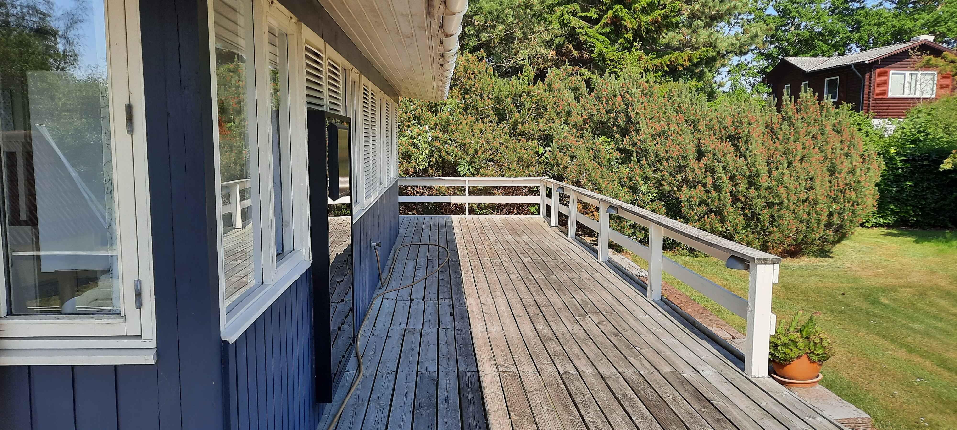 Ferienhaus mit Meerblick und großer Holzterrasse