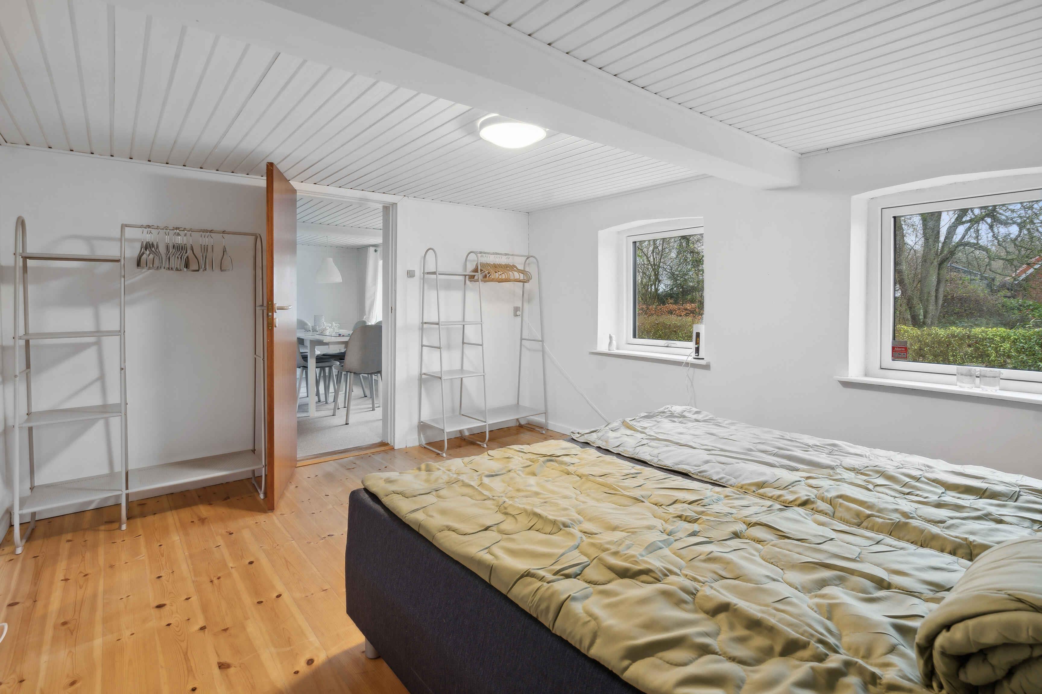 Ein gemütliches Ferienhaus mit Platz für Entspannung und Gemeinsamkeit. Mit seinen 90 m² bietet das Haus zwei Schlafzimmer und sechs Schlafplätze – ideal für Familien oder kleine Gruppen. Im Inneren sorgt der Kaminofen für eine warme Atmosphäre, perfekt für kühle Abende. Die Deckenhöhe ist etwas niedriger als gewöhnlich, was eine behagliche und intime Stimmung schafft. Draußen lädt ein schöner Garten dazu ein, die Sommertage in ruhiger Umgebung zu genießen. Es gibt Platz zum Spielen, für Mahlzeiten im Freien und für lange Abende mit Vogelgezwitscher. Nur 1.500 Meter entfernt liegt ein wunderschöner Badestrand. Das Wasser ist ideal für eine erfrischende Morgendusche oder ausgedehnte Schwimmrunden – perfekt für einen Tag mit Sonne, Sand und Entspannung. Die Umgebung bietet ruhige Naturerlebnisse und schöne Wanderwege. Kleine Straßen und Pfade führen durch eine Landschaft, in der Felder, Wälder und das Meer aufeinandertreffen. In der Nähe gibt es Bauernläden und kleine Restaurants, in denen man regionale Spezialitäten genießen kann. Hier erleben Sie die authentische dänische Ferienhaus-Atmosphäre. Für Aktivurlauber gibt es hervorragende Möglichkeiten zum Radfahren, Angeln und Wassersport. Die Natur rund um das Haus lädt zu Outdoor-Erlebnissen in einer ruhigen und unberührten Umgebung ein. Das Haus liegt nur eine Autostunde von Legoland, dem Lego House und den Jelling-Monumenten entfernt. Die Fahrt zum Koldinghus, mitten in Kolding, dauert 45 Minuten. Auf dem Weg kann man einen Abstecher in die UNESCO-Stadt Christiansfeld machen – beide Städte bieten tolle Erlebnisse. Haderslev ist nur 15 Minuten entfernt und bietet gute Restaurants, eine Einkaufsstraße mit einem schönen Park und See, Museen, ein Kino und viele Naturerlebnisse in der Umgebung. In nur 5 Minuten erreicht man Årøsund, ein Dorf mit einem lebendigen Yachthafen, besonders in den Sommermonaten. Das ganze Jahr über verkehrt eine Fähre nach Årø – eine Insel, die ein besonderes Erlebnis bietet. Ein idealer Ort für alle, die einen entspannten Urlaub in der Natur suchen. Dieses Ferienhaus verbindet Gemütlichkeit, Gemeinsamkeit und die Nähe zu Strand und Sehenswürdigkeiten. Achtung: Wird nicht für gewerbliche Nutzung vermietet.