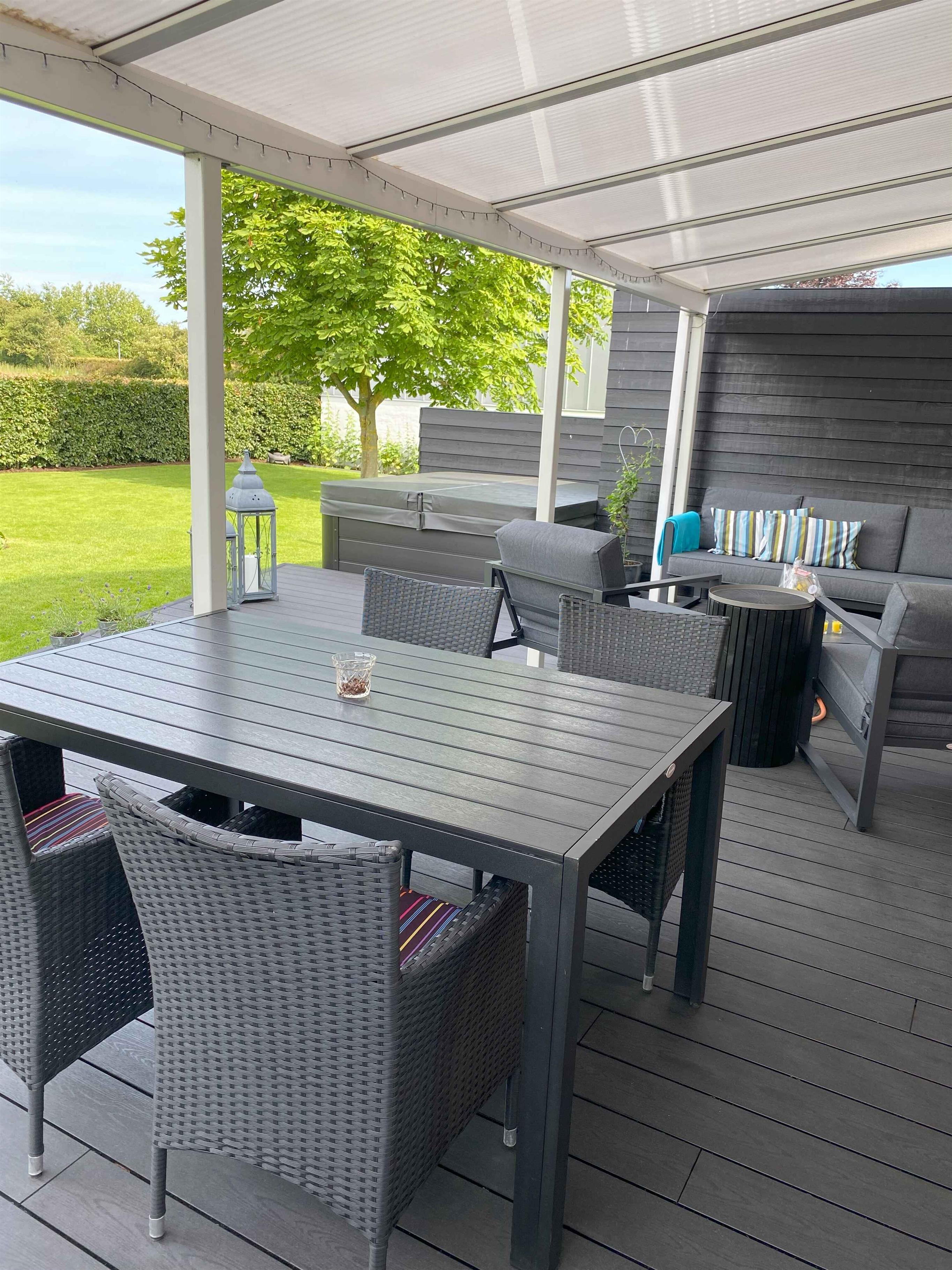 Dieses luxuriöse Landhaus befindet sich in einwandfreiem Zustand und bietet alles, was man sich für einen komfortablen Urlaub wünschen kann. Das Haus ist im modernen Stil eingerichtet, wobei Funktionalität und Ästhetik im Vordergrund stehen. Top-Ausstattung: *Außen-Spa* *Sauna* *Fitnessraum* *Neue verstellbare Betten von hoher Qualität* *Großer Garten in malerischer Umgebung, in der Nähe des Strandes und der Stadt* Das idyllische Landhaus ist perfekt für den idealen Sommerurlaub, in dem mehrere Familien an einem Ort zusammenkommen können. Mit 3 Schlafzimmern und der Möglichkeit, 8 Schlafplätze zu nutzen, bietet es viel Platz zum Entspannen und Beisammensein. Die große, moderne Küche lädt zum gemeinsamen Kochen ein, und die geräumigen Wohnbereiche schaffen eine angenehme Atmosphäre. Das Haus verfügt über ein Fitnessstudio und eine Sauna, in denen Sie sich verwöhnen können, sowie einen Außen-Whirlpool, der es Ihnen ermöglicht, in der Natur zu entspannen. Die Umgebung ist ruhig und ideal für Wanderungen und Radtouren, und die nahegelegene Küste lädt zu Strandbesuchen und Aktivitäten ein. Nur 4 km bis zum Wasser können Sie schnell die Frische des Meeres und die Schönheit der Natur genießen. Die Region bietet auch lokale Geschäfte, gemütliche Restaurants und kulturelle Erlebnisse in Haderslev. Mit seinen 279 m² bietet das Haus sowohl Privatsphäre als auch viel Platz für gemeinsames Beisammensein. Hier können Sie modernen Komfort mit der schönen Natur verbinden und unvergessliche Urlaubserlebnisse schaffen. Wir bitten darum, dass Handwerksgruppen oder Jugendgruppen keine Aufenthalte bei uns buchen. Achtung: Wird nicht für gewerbliche Nutzung vermietet.