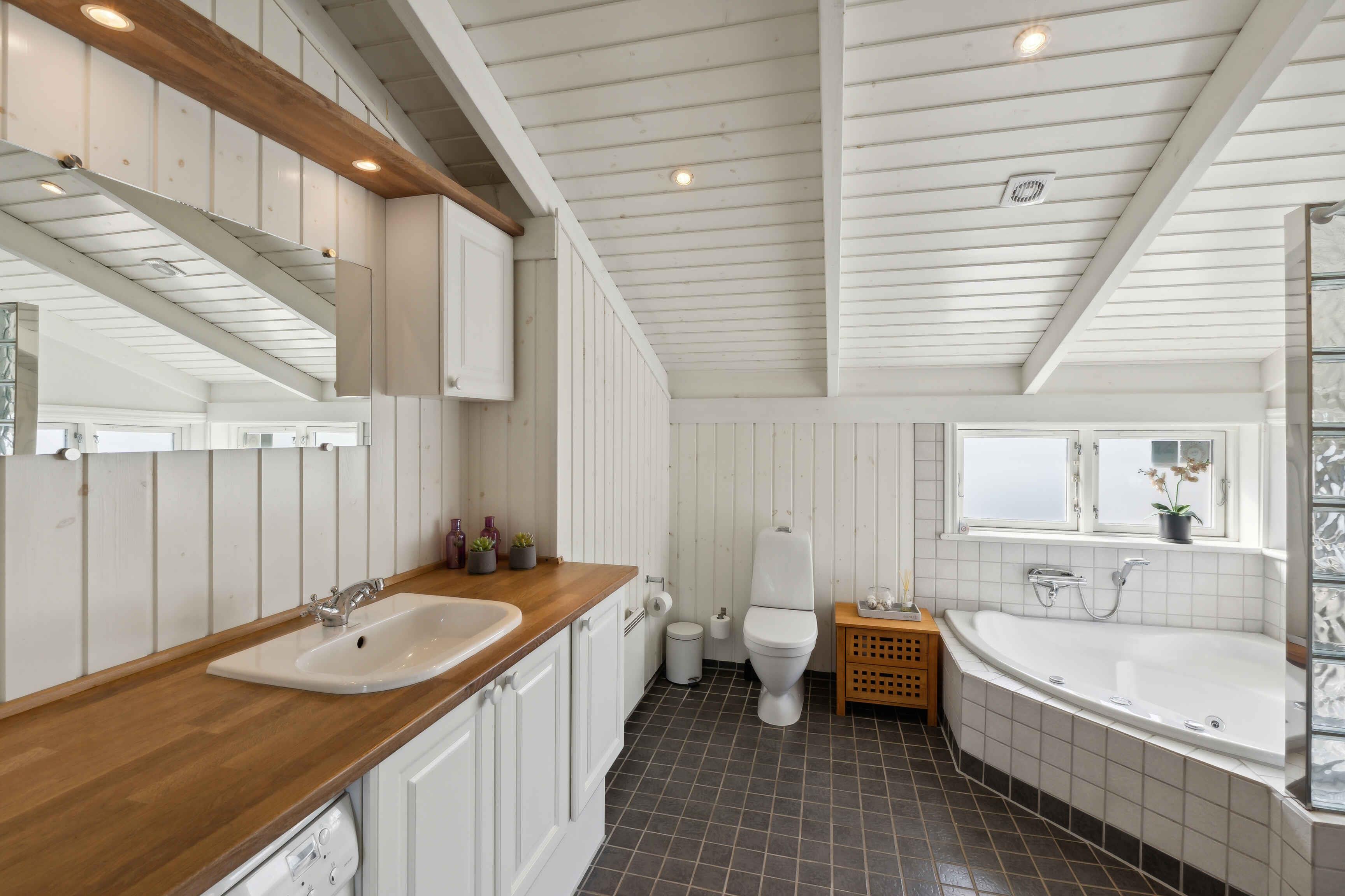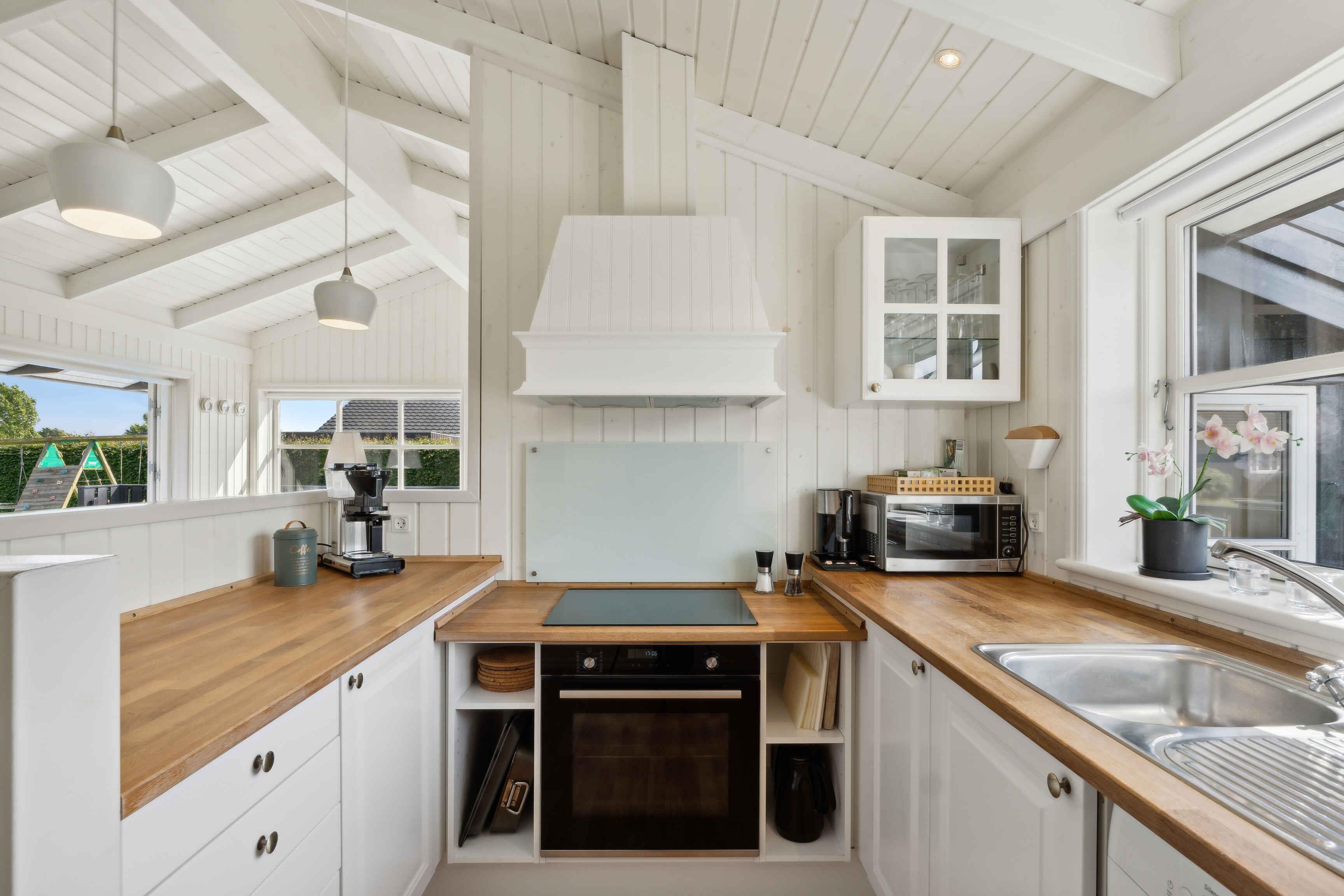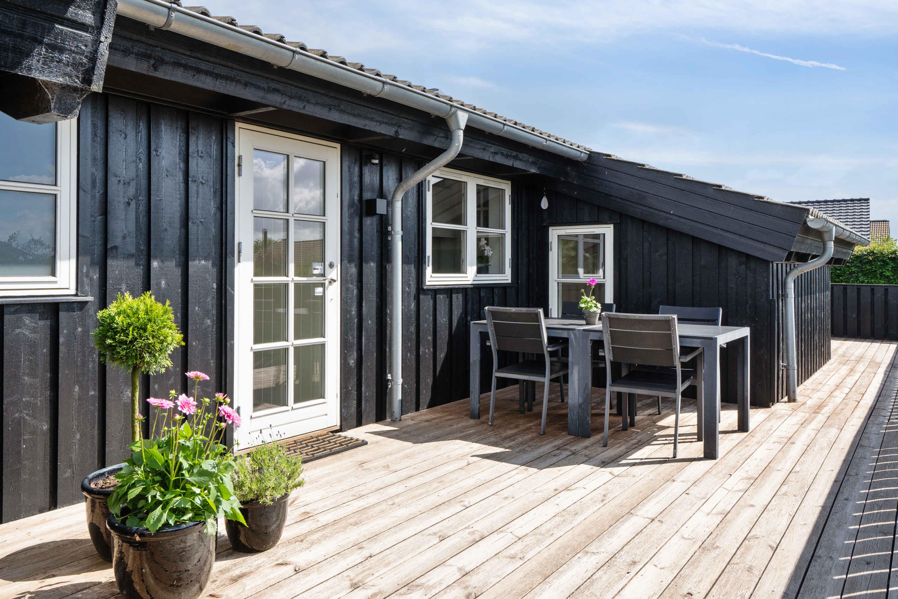 Modernes Ferienhaus mit heller und stilvoller Einrichtung, 4 Schlafzimmern und 2 Badezimmern. Nebengebäude mit Schlafsofa, Tischfußball, Fernseher und Spielkonsole – ideal für Familien und junge Leute.