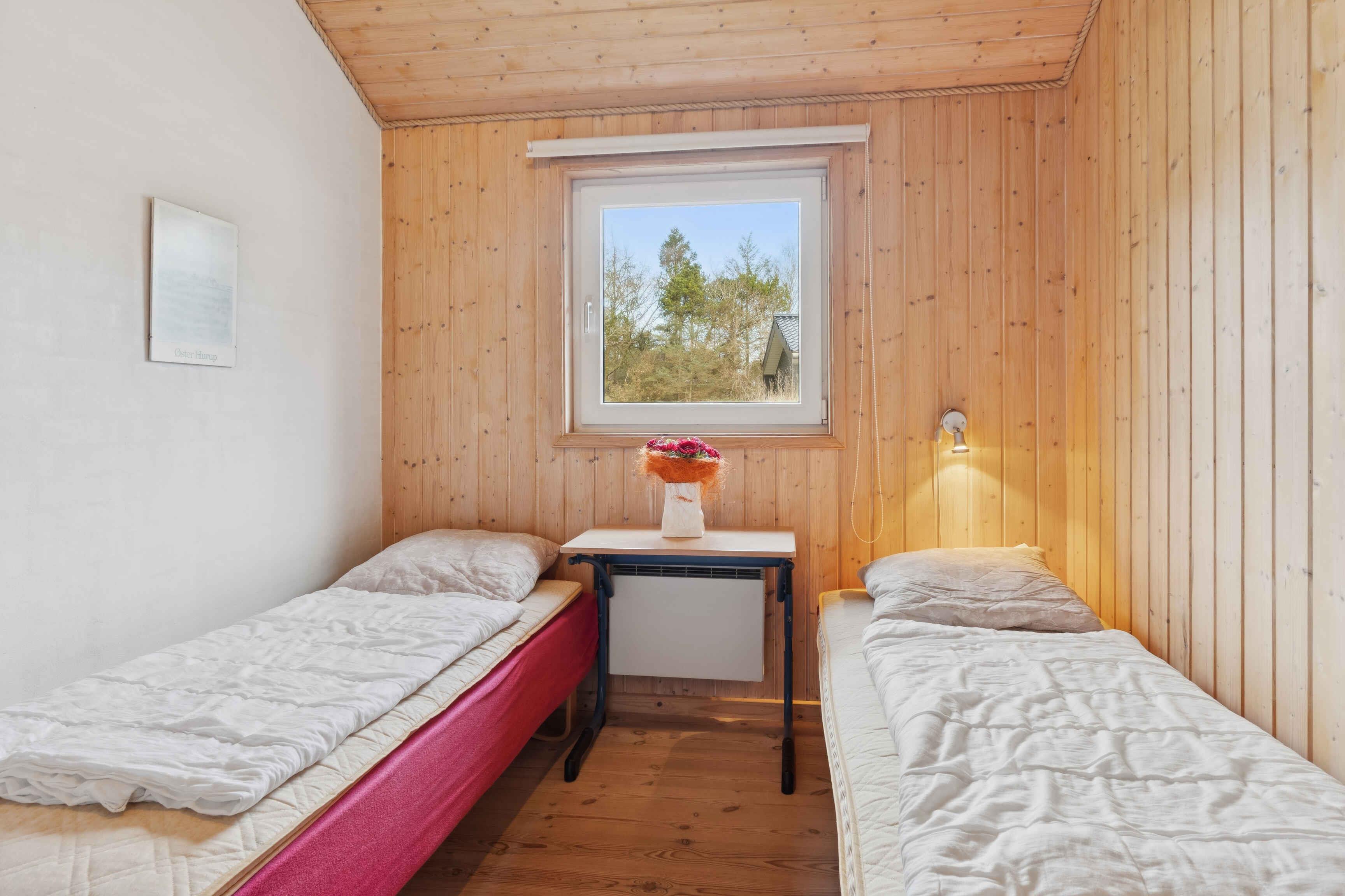 Dieses 90 m² große Ferienhaus liegt in einer ruhigen Umgebung nahe dem Meer. Nur wenige Gehminuten vom Strand entfernt, eignet es sich für Gäste, die Ruhe, Natur und schnellen Zugang zur Küste schätzen. Innen erwartet Sie ein heller Wohnraum, der offen mit der Küche verbunden ist. Von hier führt eine Tür auf eine teilweise überdachte Terrasse mit Blick auf den geschützten Garten. Das Haus verfügt über drei Schlafzimmer mit insgesamt sechs Schlafplätzen sowie einen Hems mit zwei zusätzlichen Matratzen. Das Badezimmer ist funktional und zentral gelegen. Am Ende eines kleinen Kiesweges bietet das Grundstück viel Privatsphäre und eine ruhige Atmosphäre. Der uneinsehbare Garten lädt zum Spielen, Sonnenbaden und Entspannen ein. Die Umgebung ist besonders attraktiv für Urlauber. Der Strand von Øster Hurup ist familienfreundlich mit flachem Wasser, feinem Sand und guten Bademöglichkeiten. Promenade und Hafen sorgen für Sommeratmosphäre mit Geschäften, Cafés, Eis und kleinen Aktivitäten. Das flache Gelände eignet sich für Spaziergänge und Radtouren entlang der Küste oder durch die Plantage. Der Blick über das Kattegat ist beeindruckend, besonders bei Sonnenaufgang. Die Küste eignet sich zudem zum Angeln, Paddeln und Kajakfahren. Øster Hurup bietet viele Freizeitmöglichkeiten wie Minigolf, Spielplätze und lokale Veranstaltungen. Die Mischung aus Strand, Natur und Hafenleben macht die Region ideal für erholsame Urlaubstage. Achtung: Wird nicht für gewerbliche Nutzung vermietet.