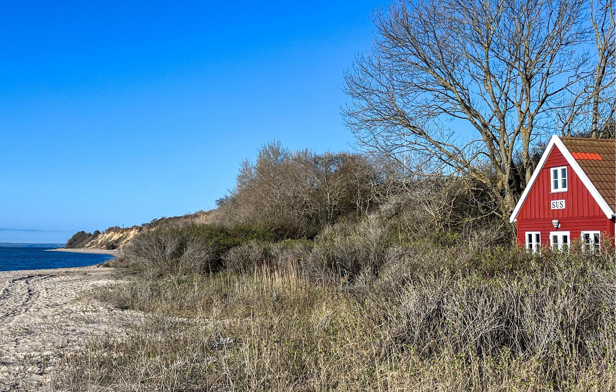 Willkommen an der schönen Ostküste Südjütlands in diesem wunderbaren Haus. Hier können Sie ein paar friedliche Tage genießen und den Alltag hinter sich lassen. Innen ist das Haus in warmen Holztönen gehalten, ergänzt durch helle Details und Sprossenfenster. Machen Sie es sich am Esstisch gemütlich und nehmen Sie sich Zeit für eine Tasse Kaffee, während Sie den Blick über die fantastische Umgebung schweifen lassen. Wenn Sie die Tür zur Terrasse öffnen, liegt das blaue Panorama direkt vor Ihnen, der ideale Rahmen für sommerliche Mahlzeiten. Wenn Sie abends von Ihren Ausflügen zurückkehren, lauschen Sie hier auch dem Rauschen der Wellen.