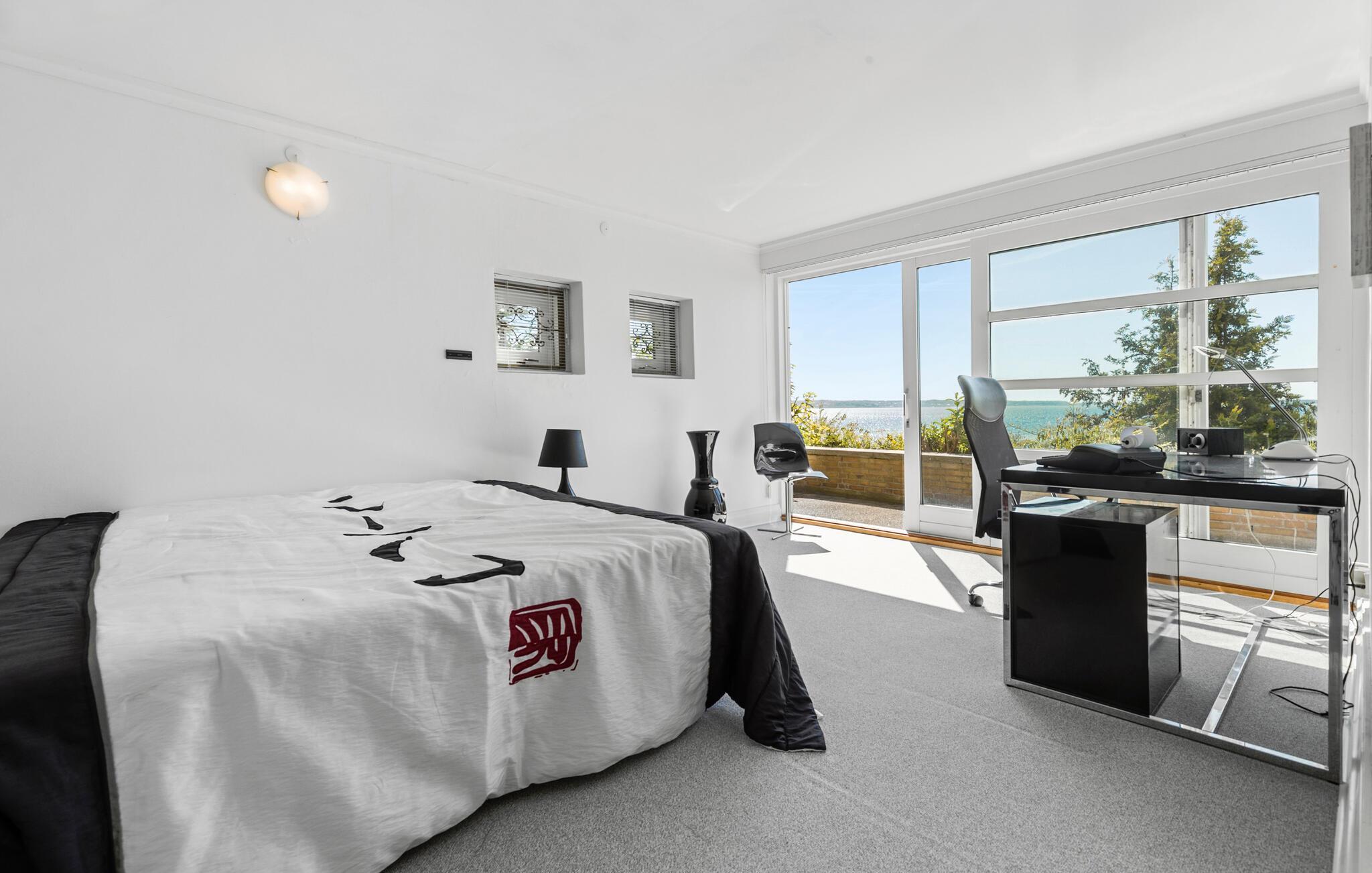 Erleben Sie Luxus und Meerblick in diesem geräumigen Ferienhaus nahe Ebeltoft mit Whirlpool und großer Terrasse.