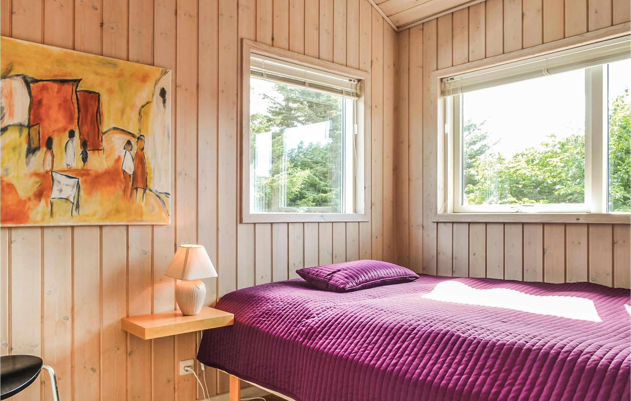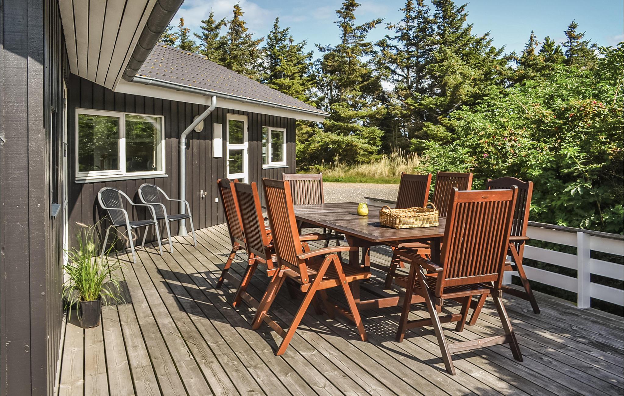 Spannendes und andersartig eingerichtetes Ferienhaus mit Unmengen von schiefen Winkeln, die normalerweise nicht in Ferienhäusern vorzufinden sind. Die großen Fenster machen die Stube besonders hell. Das Haus ist mit Holz- und Klinkerböden ausgestattet. Für Kinder gibt es einen kleinen offenen Boden, der sowohl als Schlaf- oder Platz zum Spielen benutzt werden kann. Die großen Terrassen sind ein herrlicher Ort, wenn die Sonne scheint. Dicht am Haus finden Sie sowohl das Meer und die Förde als auch öde Dünenlandschaften. Es liegt nicht weit von einem Reitzentrum.