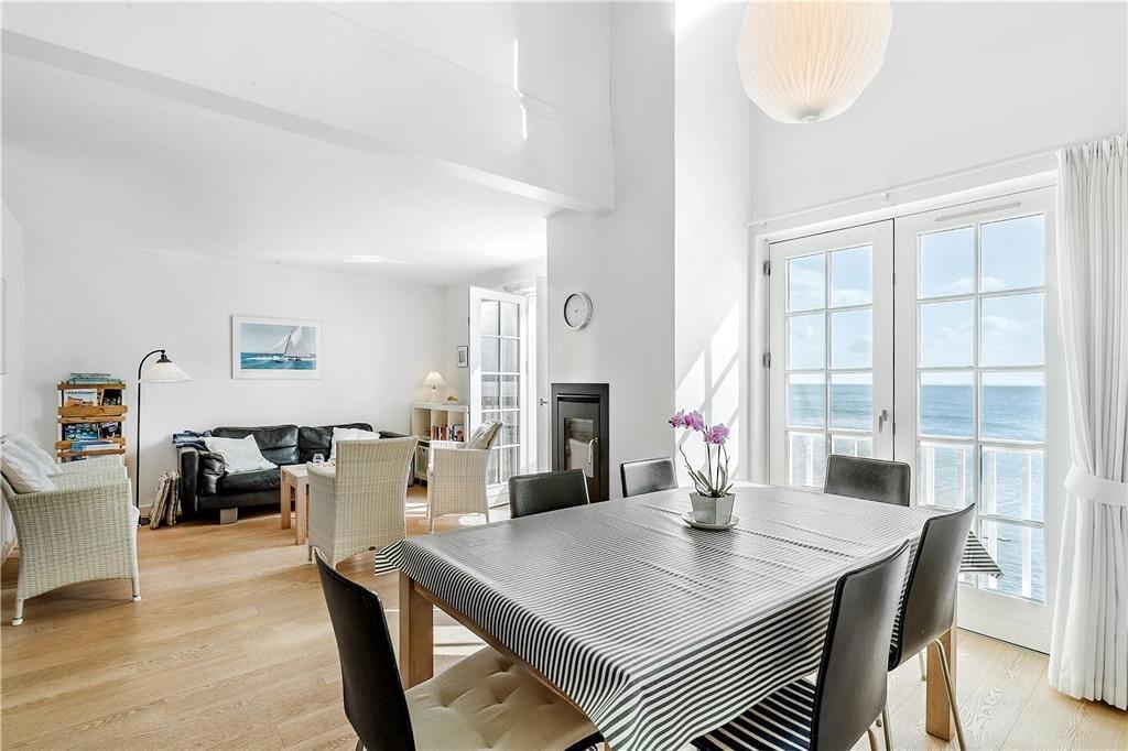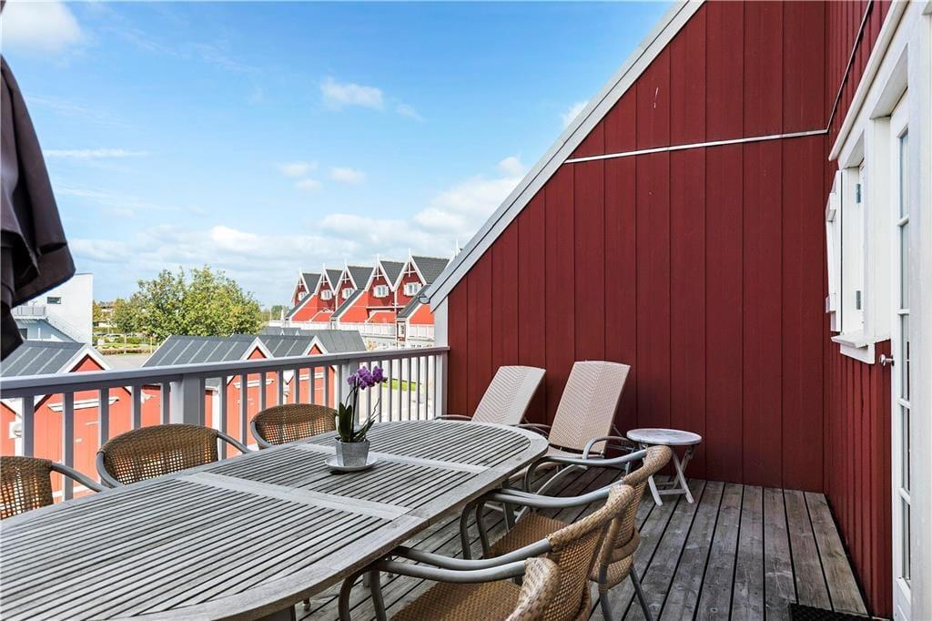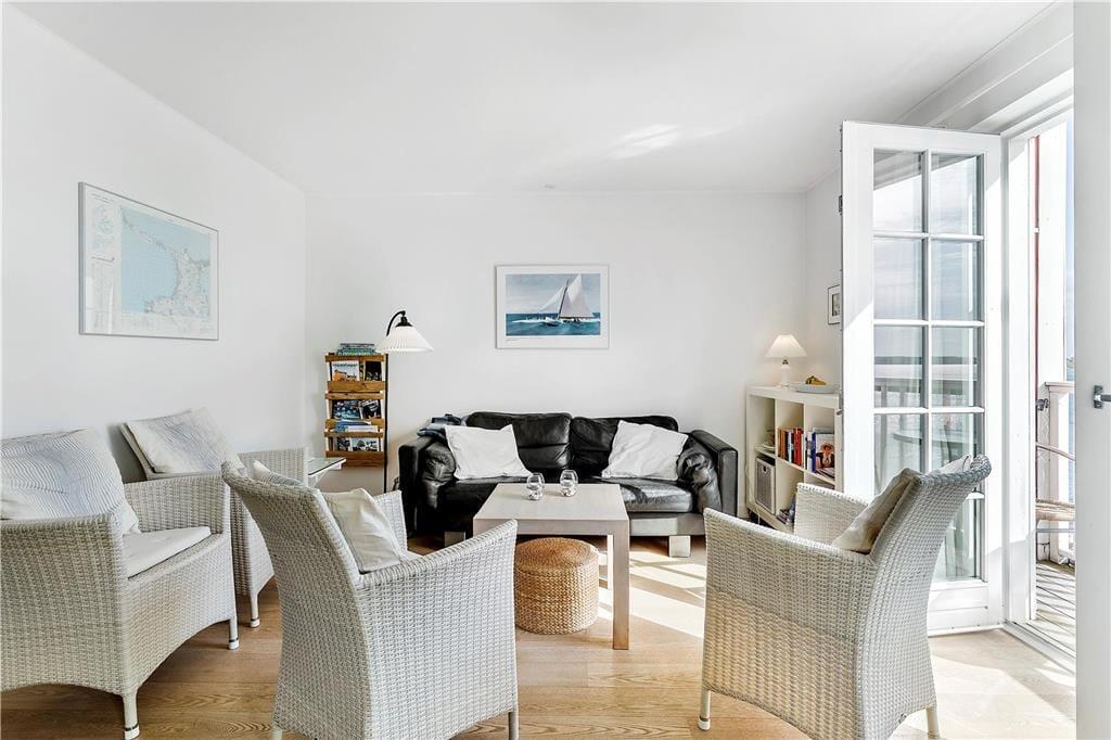 Deine richtig schöne, attraktiv gelegene Ferienwohnung befindet sich in den oberen beiden Etagen eines hübschen Reihenhauskomplexes. Du wohnst in erster Reihe zum Wasser und genießt nach Süden einen schönen Ausblick über die Bucht von Nykøbing und den Isefjord. Den gesamten Tag über verfolgst du die Aktivitäten im Hafen und beobachtest vorbeiziehende Boote, Segelschiffe und Kajaks auf dem Wasser. Nicht nur in der Sommersaison hat die Wohnung viel zu bieten. In der kälteren Jahreszeit verwöhnen dich der behaglich knisternde Kaminofen im Wohnraum und eine Sauna. Vom Wohnraum blickst du auf die Hafeneinfahrt und über die gesamte Bucht. An lauen Tagen stellst du die Terrassentür weit auf und machst es dir an der frischen Seeluft gemütlich. Mit zwei Badezimmern und drei Schlafräumen, die sich auf beide Etagen verteilen, mit einer Terrasse gen Norden und einer gen Süden, bieten sich dir und deiner Familie beste Möglichkeiten für erholsame, stimmungsvolle und entspannte Urlaubstage - drinnen wie draußen.