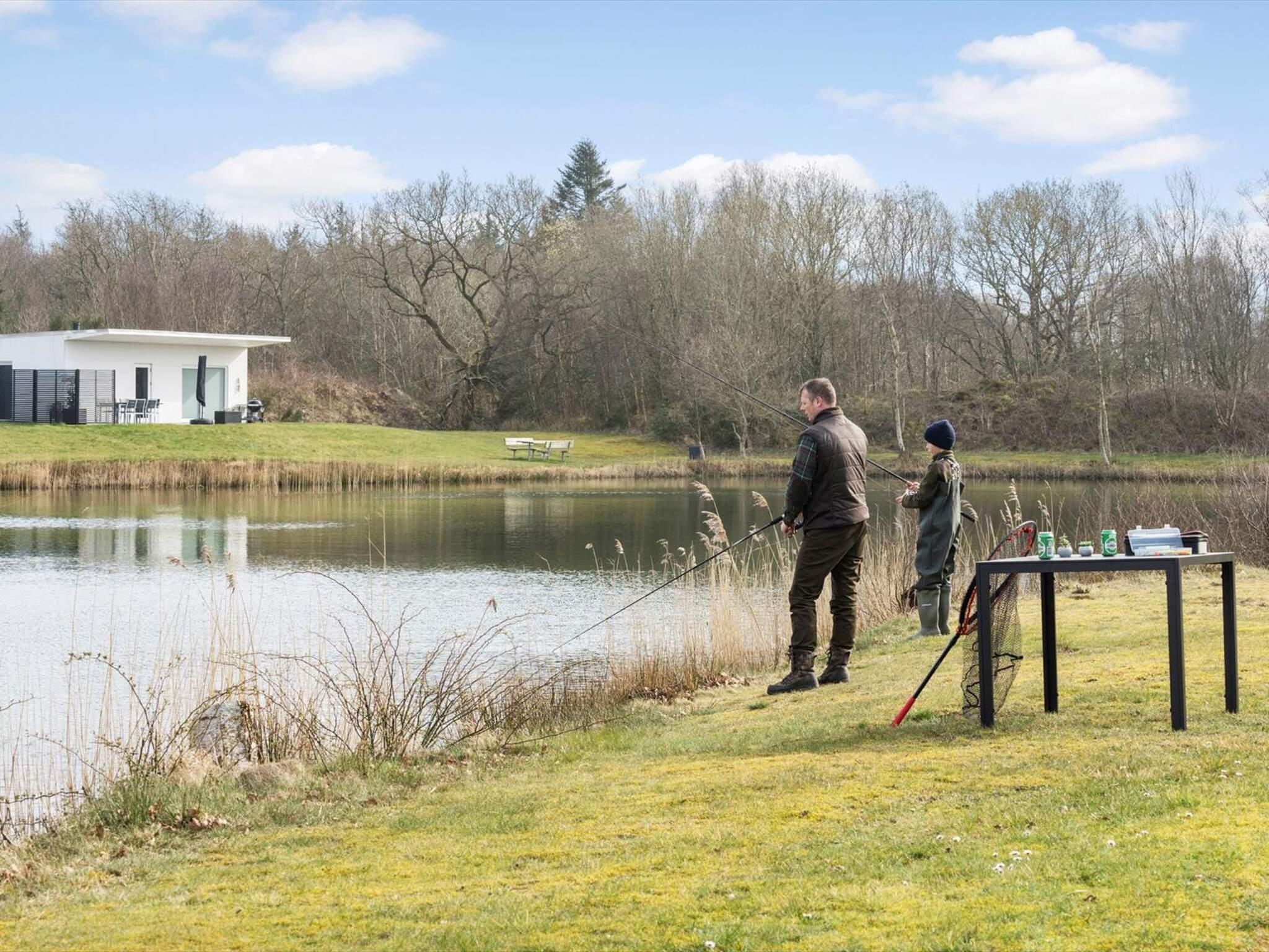 Skønt sommerhus beliggende i Hee i et dejligt sommerhusområde ved Familiepark West, hvor der er indkøbsmuligheder og en lille grillbar ved campingpladsen. Der er gratis adgang til parkens faciliteter, bl.a. udendørs pool (kun åben i sommerhalvåret), kano, svævebane, legeplads og minigolf. Sommerhuset har udsigt ud over en af de tre idylliske fiskesøer der er i området. I området er der desuden plads til at rense fisk i fiskerhuset, ligesom der er en 100 Liters fryser i sommerhusets teknik rum til dagens fangst. Bemærk at du skal bruge en gyldigt fisketilladelse.