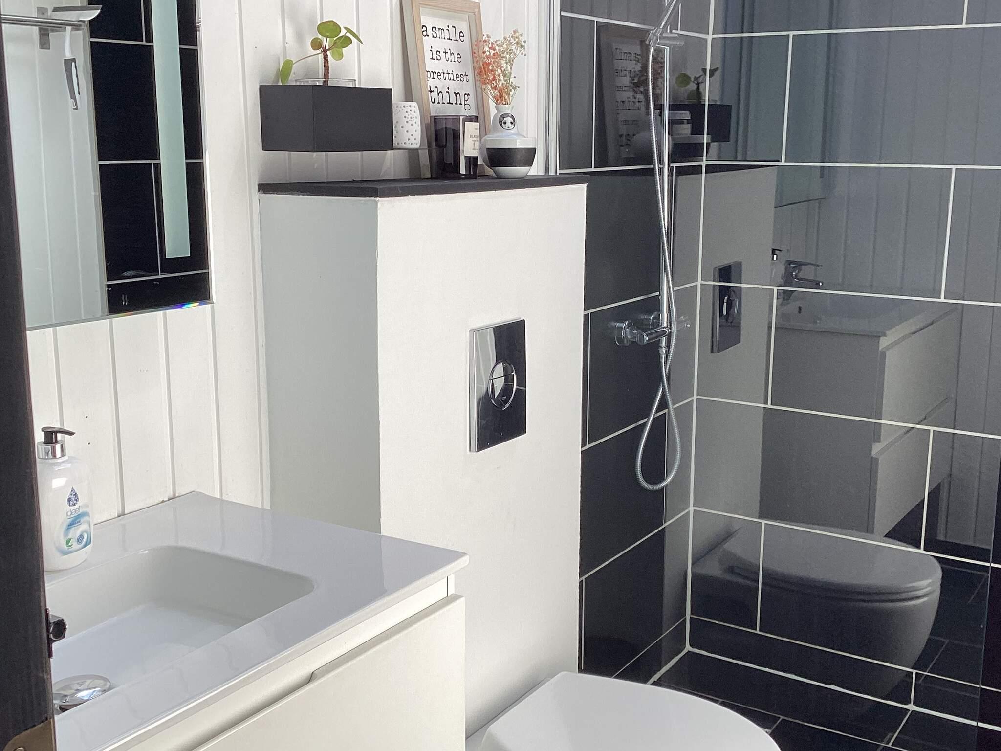 Bad: WC, Waschb., Dusche, Fußbodenheiz.