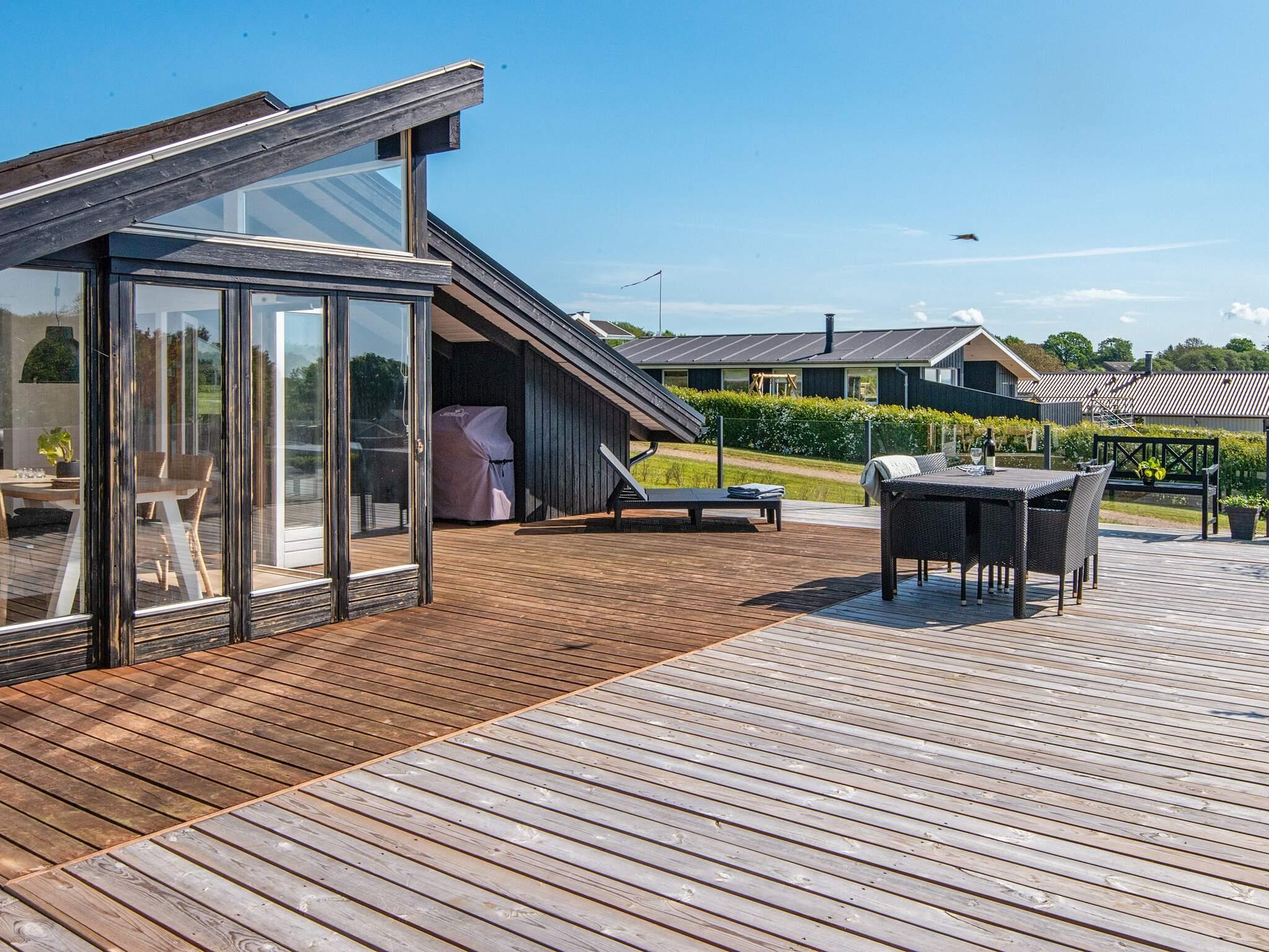 Einzigartig ist die großzügige Terrasse des Hauses: Sie bietet einen großen Bereich nach Osten für ein Frühstück im Freien und einen Bereich nach Süden und Westen für weitere Stunden im Freien bis zum Grillen, wofür es einen überdachten Bereich gibt. Die Terrasse ist mit vielen guten Gartenmöbeln ausgestattet, darunter zwei Sitzgruppen sowie mehrere Sonnenliegen und Liegestühle – lehnen Sie sich zurück und genießen Sie Ihren Urlaub!