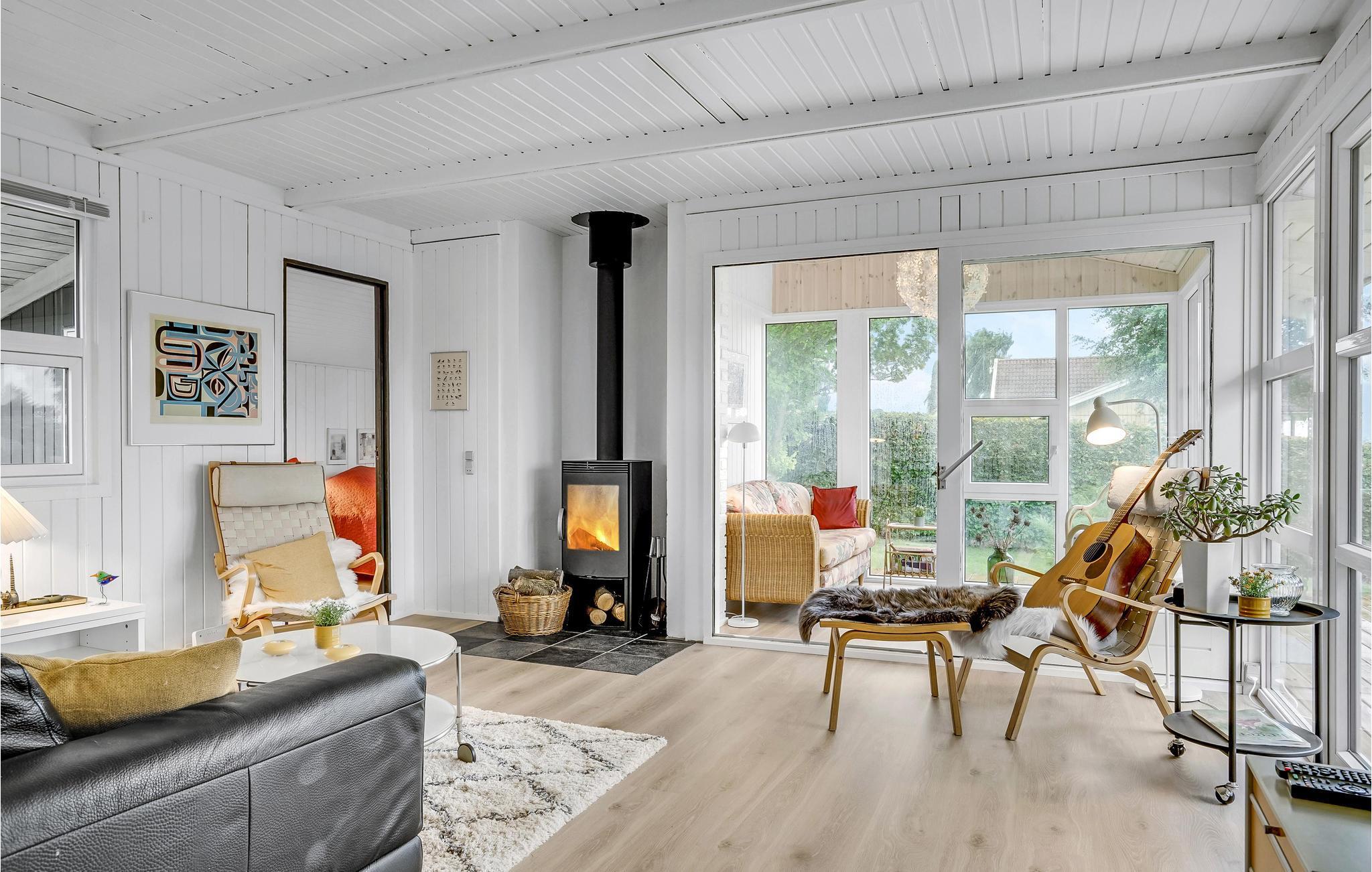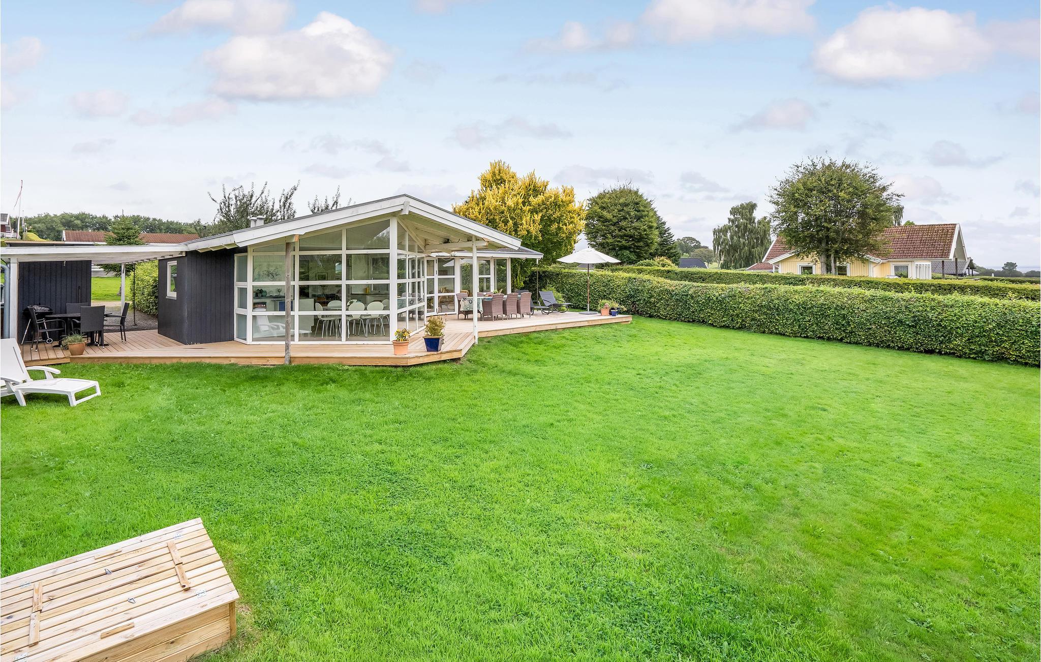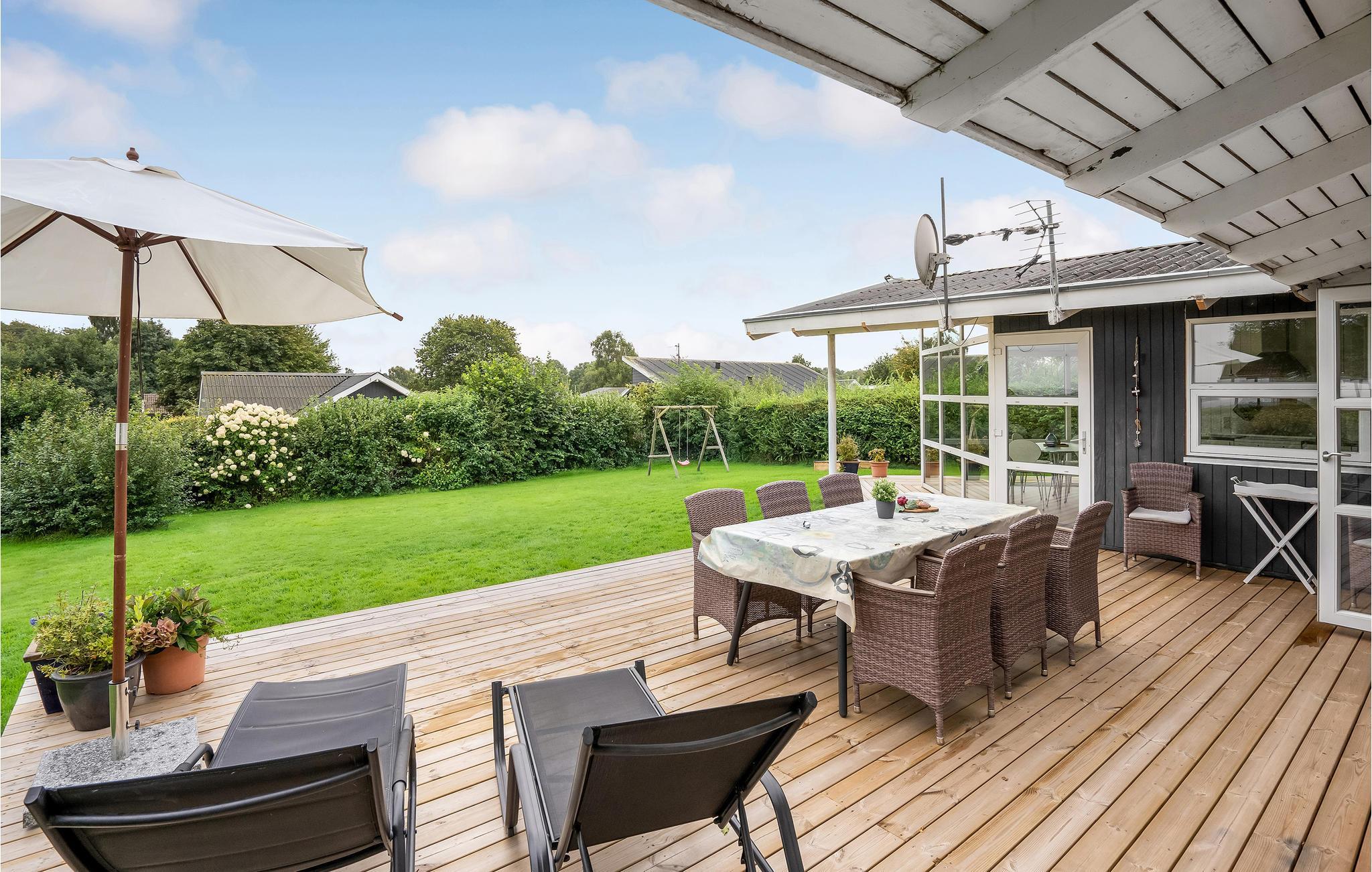 Dieses schöne Holzhaus liegt am äußersten Rande eines großen Ferienhausgebiets auf einem angelegten Gartengrundstück mit niedrigem Randbewuchs. Das Haus wurde vor wenigen Jahren umfassend renoviert, und 2006 wurde ein neues, modernes Bad eingebaut. Das Haus ist durch und durch modern und enthält allen für einen komfortablen Aufenthalt nötigen Komfort. Von der Terrasse aus haben Sie einen Ausblick zum Lillebælt, Brandsø und über Fyn. Die Gegend bietet viele Möglichkeiten für Spaziergänge auf einem ausgebauten Wegenetz ohne Autoverkehr, dicht an Strand und Wald.