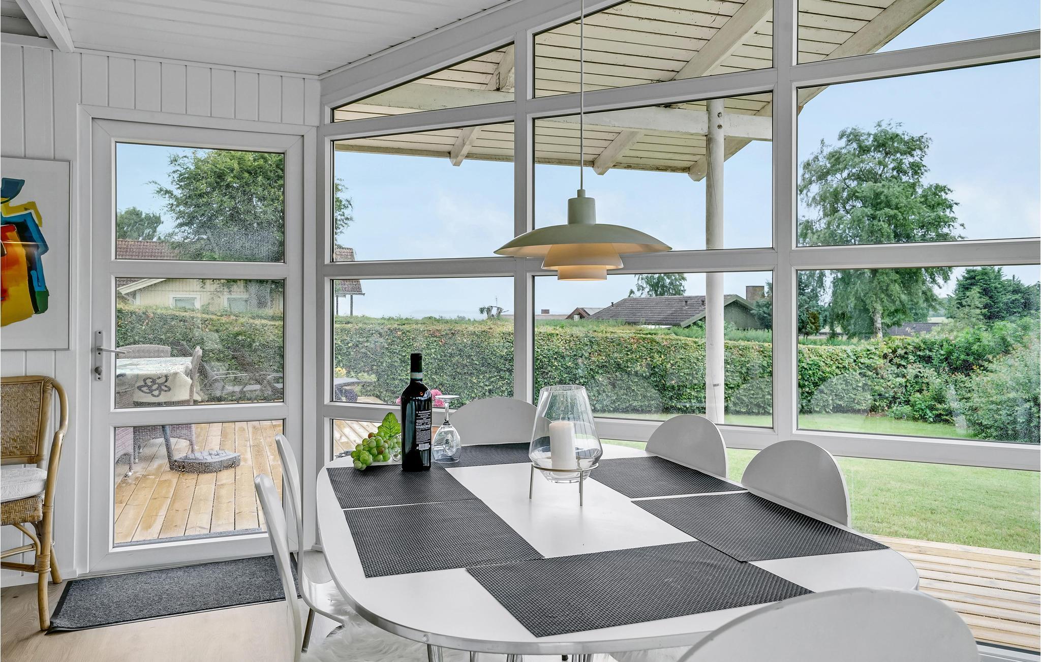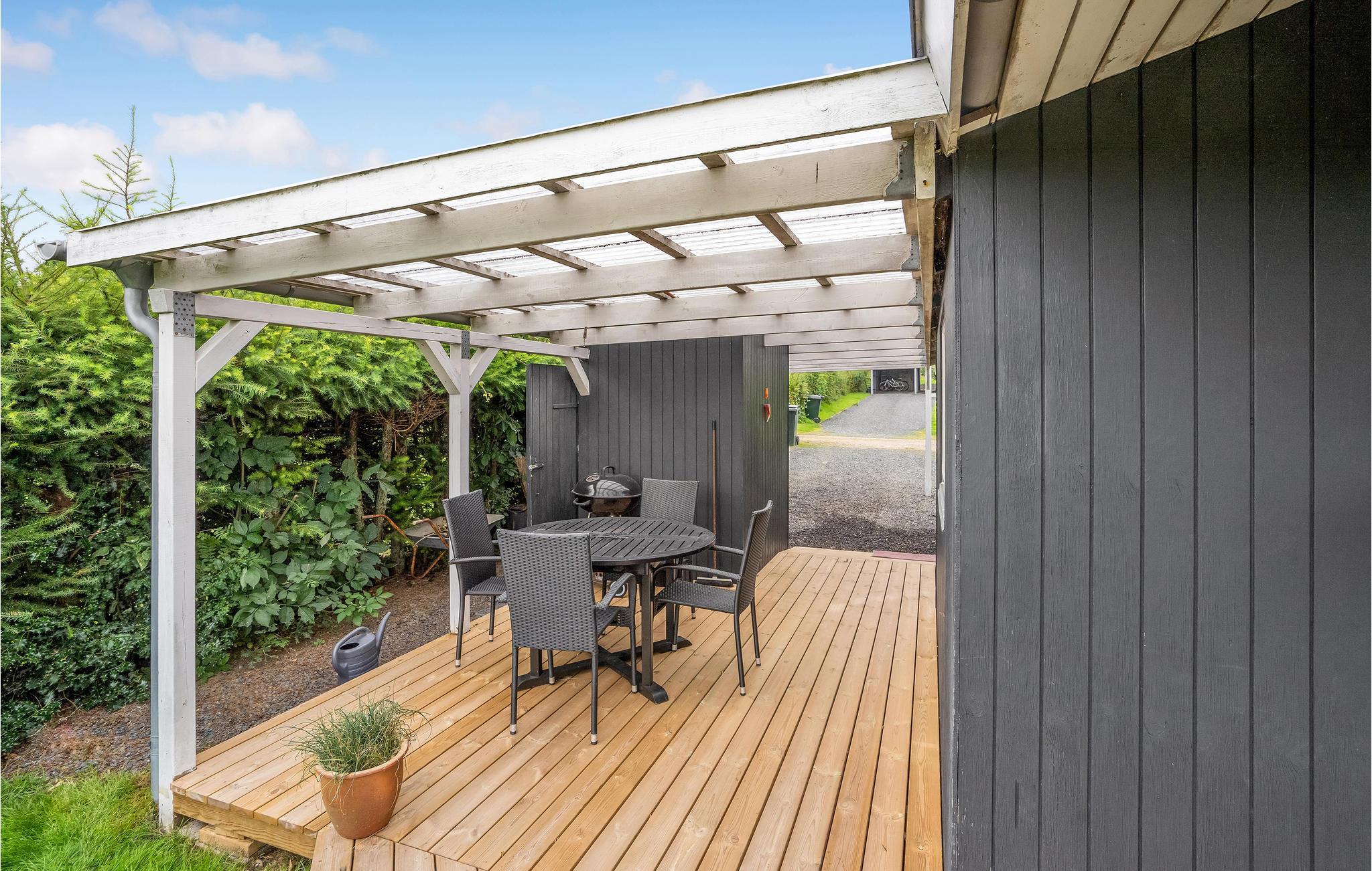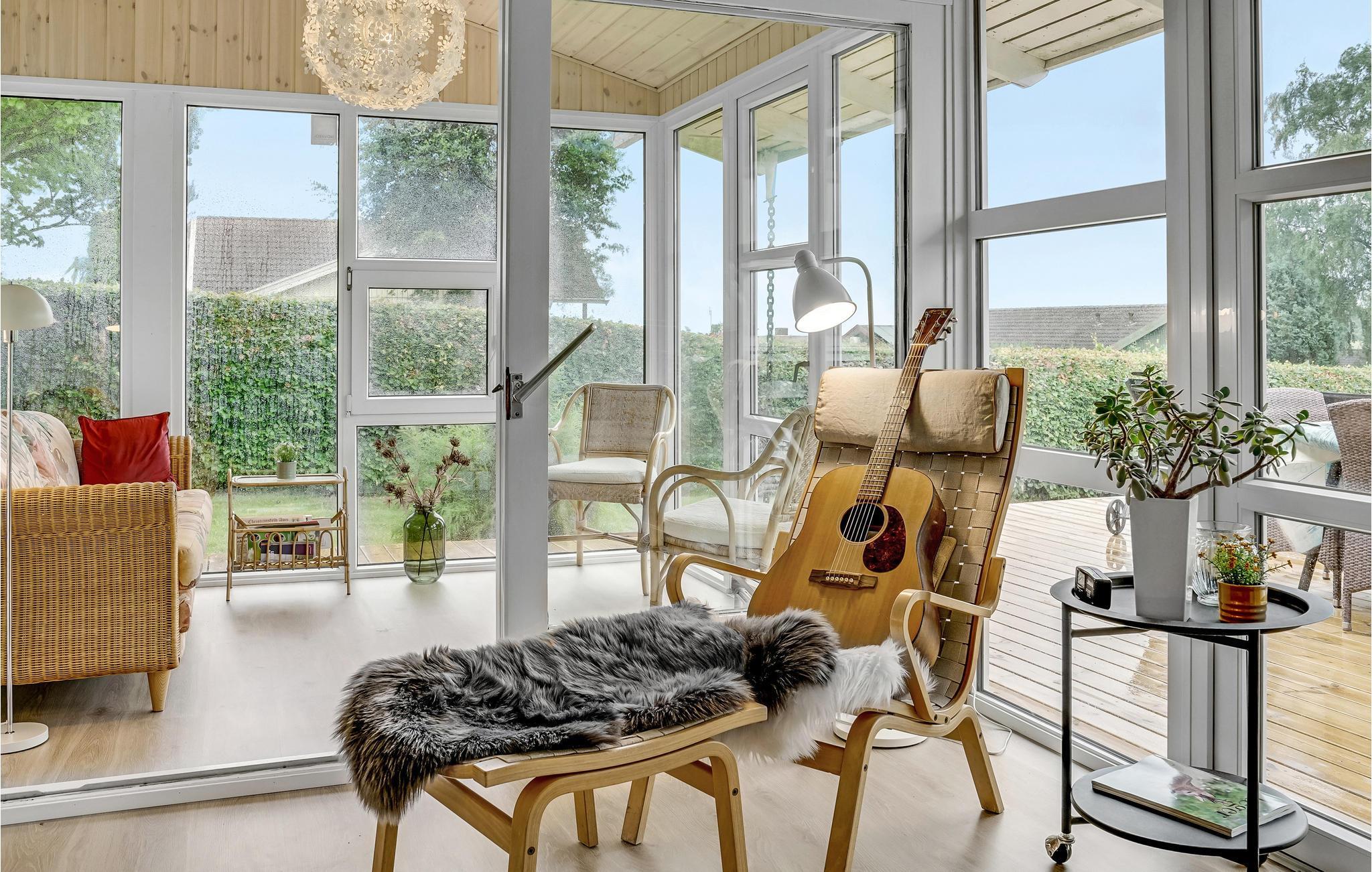 Dieses schöne Holzhaus liegt am äußersten Rande eines großen Ferienhausgebiets auf einem angelegten Gartengrundstück mit niedrigem Randbewuchs. Das Haus wurde vor wenigen Jahren umfassend renoviert, und 2006 wurde ein neues, modernes Bad eingebaut. Das Haus ist durch und durch modern und enthält allen für einen komfortablen Aufenthalt nötigen Komfort. Von der Terrasse aus haben Sie einen Ausblick zum Lillebælt, Brandsø und über Fyn. Die Gegend bietet viele Möglichkeiten für Spaziergänge auf einem ausgebauten Wegenetz ohne Autoverkehr, dicht an Strand und Wald.