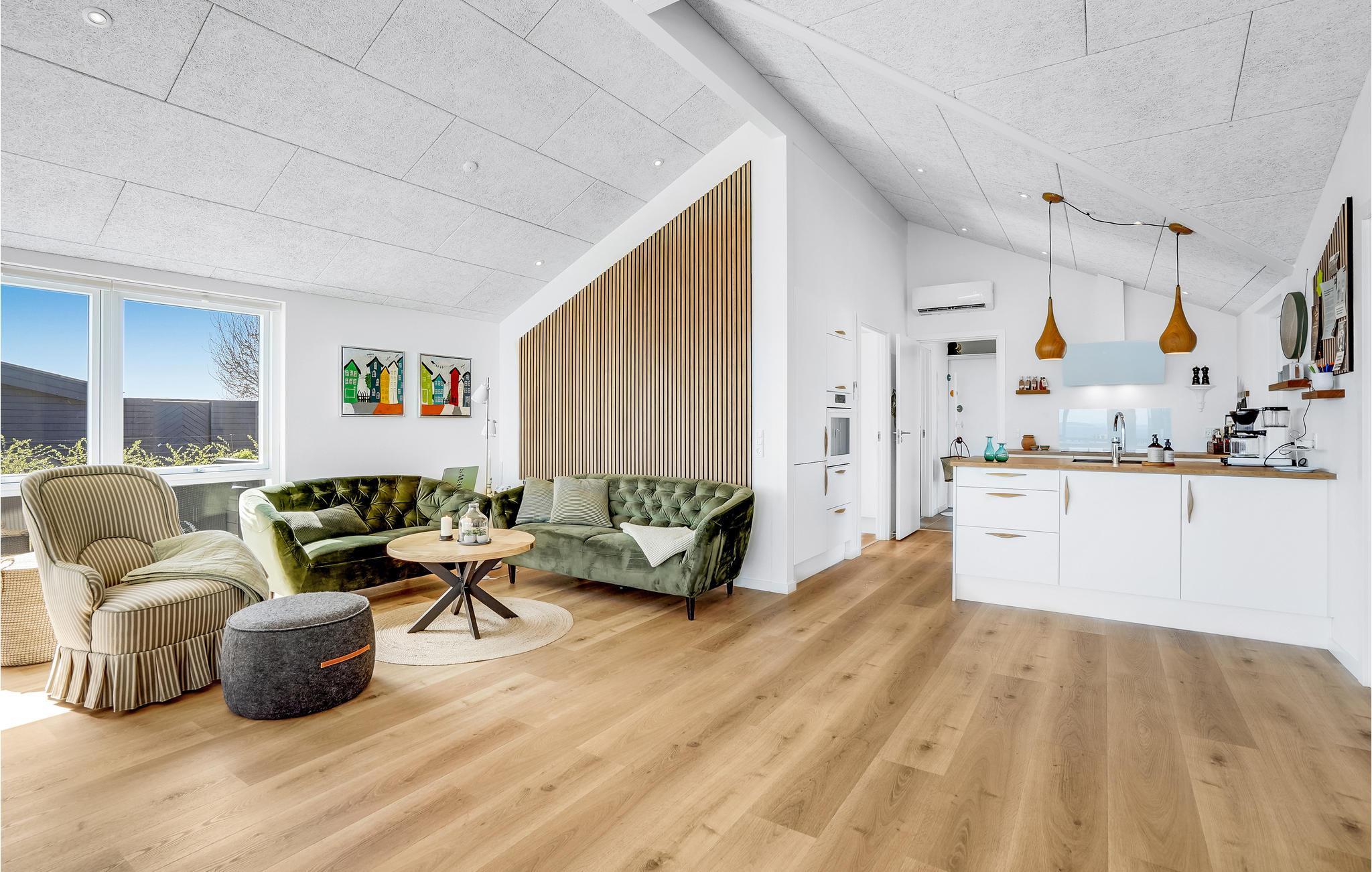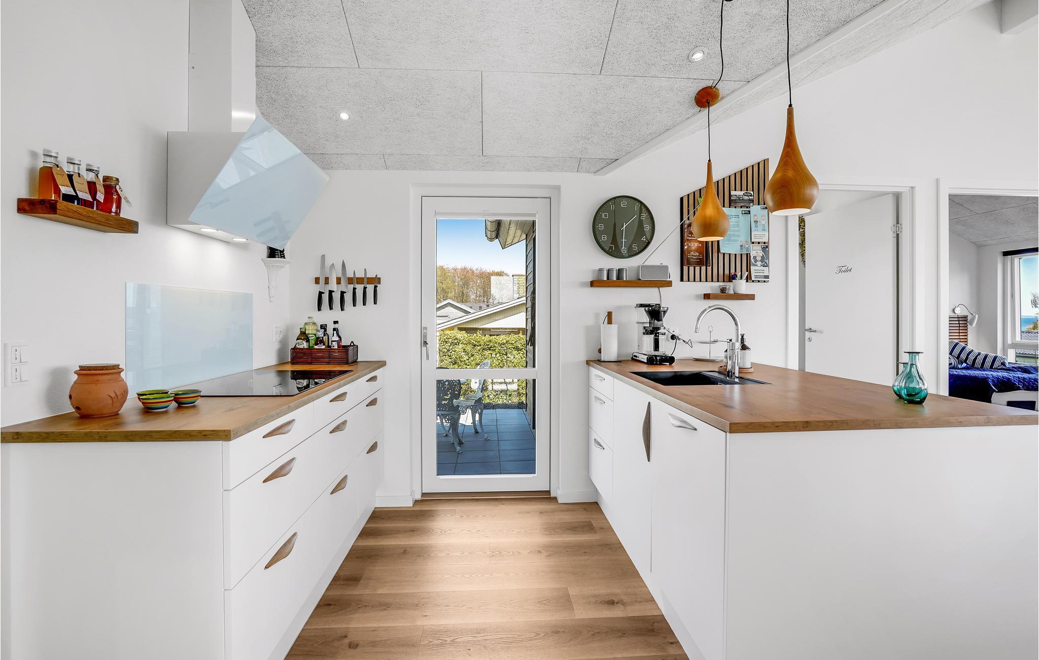 Willkommen in diesem modernen, schön designten Haus an der Küste - Nur wenige Minuten trennen Sie vom Wasser, das Sie schon von Ihrer kleinen Urlaubsoase beobachten können: Freuen Sie sich auf Ihre Zeit in diesem Sommerhaus in besonderer Gemütlichkeit. Über die Dächer der umliegenden Ferienhäuser schweift Ihr Blick bis hinunter zum nassen Blau - ein herrlicher Anblick. Die Möbel und die Einrichtung sind durchweg hochwertig und gekonnt zusammengestellt. Einer Ihrer Lieblingsorte könnte Ihre Terrasse werden, die sich bestens für den Morgenkaffee eignet.