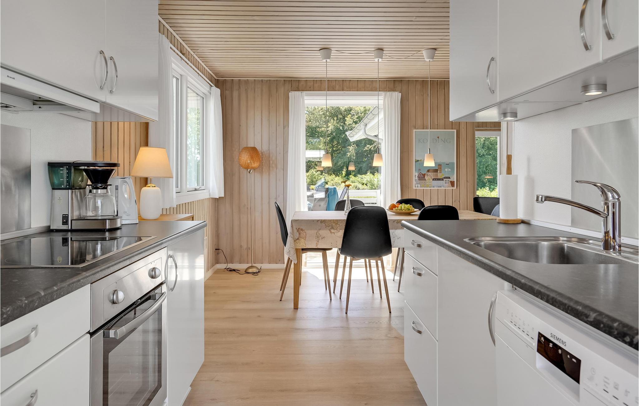 Sie wohnen am Ende einer Sackgasse, in einem gemütlichen Ferienhaus mit herrlicher Panoramaaussicht auf Felder und Wälder. Die Einrichtung ist schön und hell und eine große Terrasse geht fast um das ganze Haus herum. Sie finden Sonne und Schatten nach Gebrauch und der überdachte Bereich lässt Sie auch die langen Abenstunden im Freien erleben. Ein paar Meter vom Haus beginnt schon der Wald. Hejlsminde am Kleinen Belt ist von einer schönen Natur umgeben. Im Ort ist ein schöner Jachthafen. In der Umgebung gibt es gute Rad- und Wanderwege, die durch einen schöne Natur führen. Nicht weit von Hejlsminde liegen Skamlingsbanken und Christiansfeld (Honigkuchen, Kachelöfen und Salami). Kolding bietet zudem viele Erlebnisse für Kinderfamilien und Kunstbegeisterte. Besuchen Sie z. B. das Museum Trapholt. Es gibt auch einen Spielepark, der gratis ist. Auch ein großes Einkaufszentrum in Kolding lädt zum Bummeln.