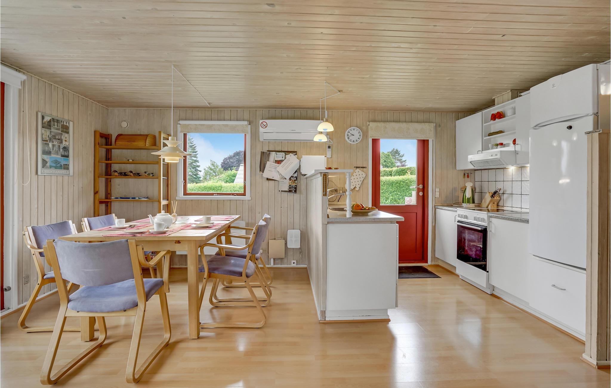 In einer ruhigen Straße in Hejlsmindes Ferienhausgebiet liegt dieses gemütliche Ferienhaus auf einem großen, abgeschirmten Grundstück. Hier können Sie sich ungestört aufhalten und das Leben im Freien auf der überdachten Terrasse genießen. Das Haus ist mit einem Wohnzimmer-Küchenbereich ausgestattet, sechs Schlafplätze sind auf drei Schlafzimmer verteilt, so dass es viel Platz für die Familie gibt. Machen Sie es sich vor dem prasselnden Kaminofen bequem oder nutzen Sie an kühleren Abenden die Wärmepumpe.