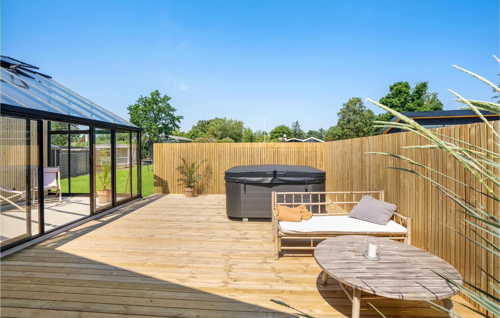 Modernes Ferienhaus in Haderslev mit Meerblick, Terrasse und Whirlpool für einen erholsamen Familienurlaub.