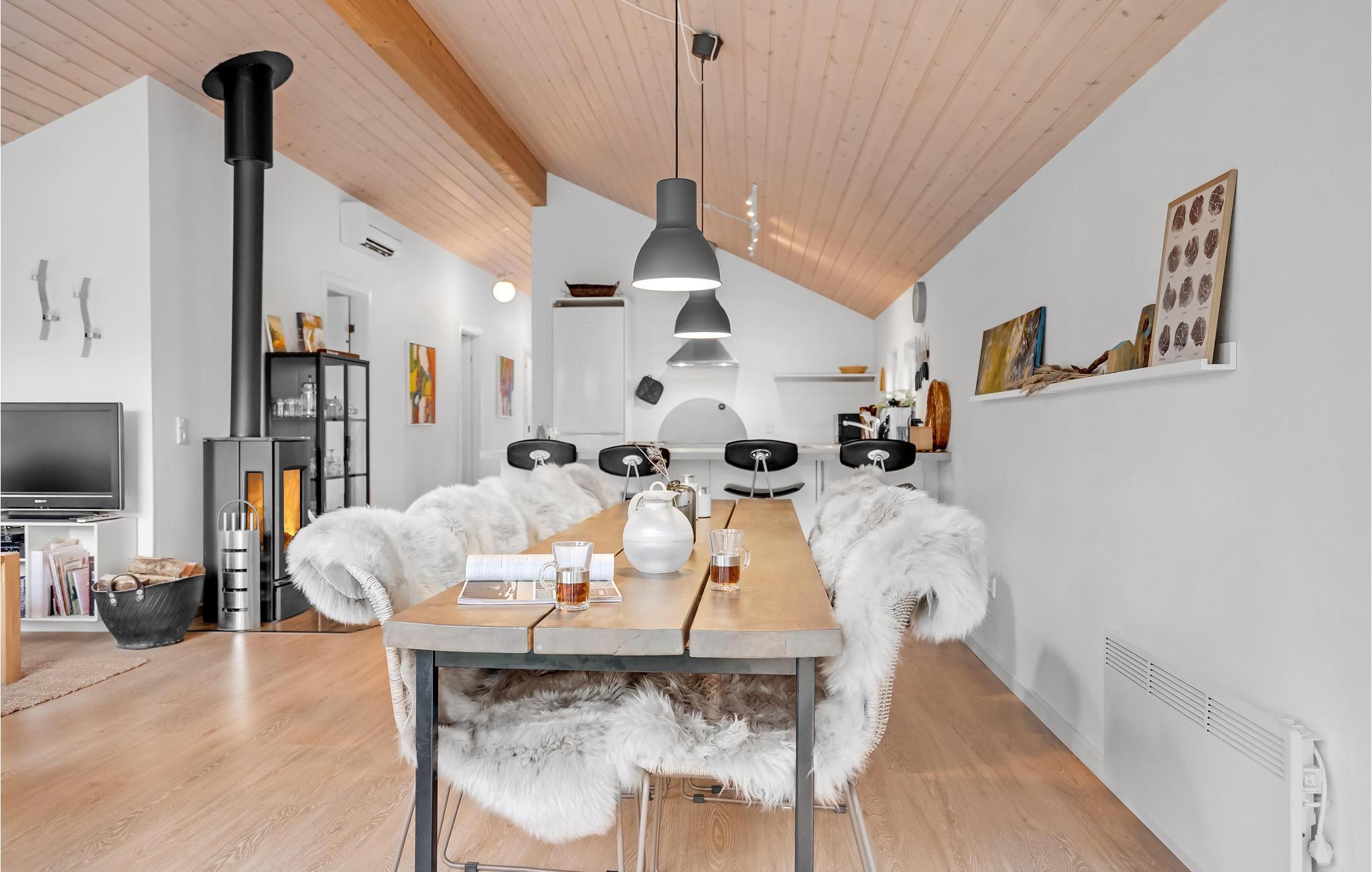 Das Haus schmiegt sich in Wald und Wiesen und bietet eine Menge Platz und Ruhe. Das Innere strahlt nur so vor Gemütlichkeit, besonders in der offenen Wohnküche mit wärmendem Kamin, wo Ihre Urlaubsgemeinschaft regelmäßig zusammenkommt. Von Ihren erfrischenden Spaziergängen ans nahe Wasser können Sie sich in Sauna und Whirlpool bestens erholen. Dank der hellen, praktischen Raumaufteilung finden alle Urlaubsgäste einen idealen privaten Rückzugsort, während man für geselliges Miteinander immer in das große Wohnzimmer oder an sonnigen Tagen auf die Terrasse kann, die den grünen Garten überblickt.