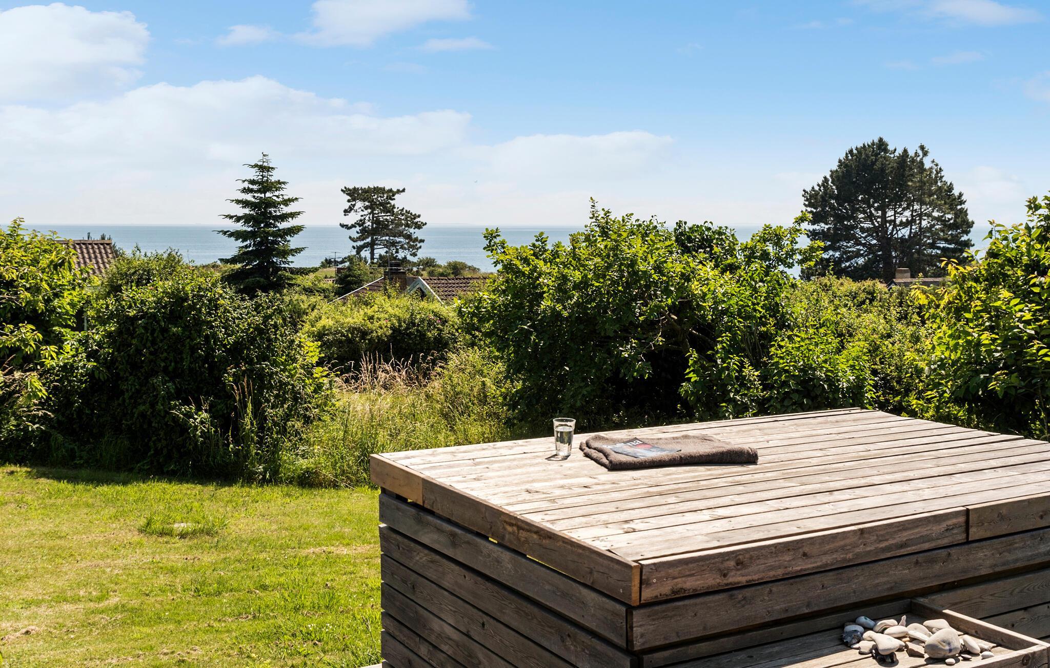 Modern eingerichtetes Ferienhaus mit Meerblick, großer Terrasse und stilvollem Design in Hellesklint, Dänemark.