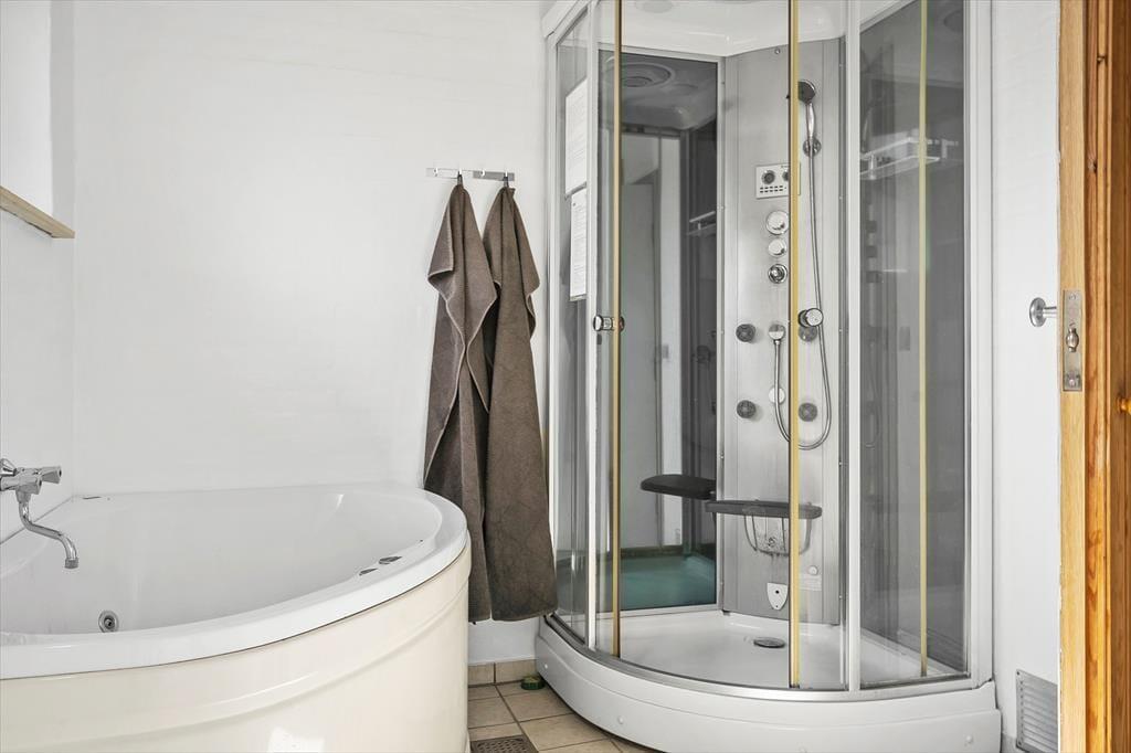 Wenn Sie sich nicht am Strand aufhalten oder einen Ausflug in der reizvollen Umgebung unternehmen, können Sie Ihren Urlaub in diesem gepflegten 100 m² großen Ferienhaus genießen. Im Wohnzimmer können Sie sich im sonnenverwöhnten Glasvorbau niederlassen, auf dem Sofa einen spannenden Film auf dem Flachbild-TV anschauen oder beim Knistern des Kaminofenfeuers den Gedanken freien Lauf lassen. Ihre Mahlzeiten bereiten Sie in der offenen Küche zu. Erholungsmöglichkeiten bietet Ihnen das große Badezimmer, das mit Whirlpool und Sauna ausgestattet ist. Die Schlafplätze verteilen sich auf drei gute Schlafzimmer, von denen eines mit einem Doppelbett, eines mit einem Etagenbett und das dritte mit zwei Einzelbetten eingerichtet ist.