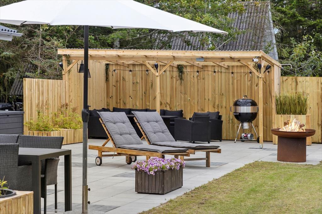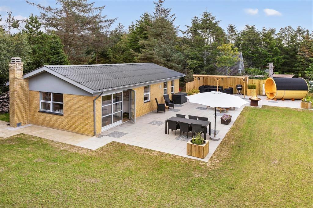 Das Leben im Freien lässt sich auf der schönen Terrasse genießen, die sowohl offene als auch überdachte Bereiche bietet, sodass ihr bei jedem Wetter einen angenehmen Platz findet. Hier könnt ihr den Morgen mit einer Tasse Kaffee an der frischen Luft beginnen, sonnige Nachmittage in den Liegestühlen verbringen und euch abends zum Grillen unter freiem Himmel versammeln. Das Highlight ist die Saunatonne, die euch nach einem Tag am Strand oder beim Erkunden der Umgebung verwöhnt – ein Erlebnis, das Wellness und Natur auf perfekte Weise verbindet. Der Garten bietet zudem viel Platz für Spiele und kleine Aktivitäten, während andere die Aussicht von der Terrasse genießen und die ruhige Atmosphäre der Umgebung auf sich wirken lassen.