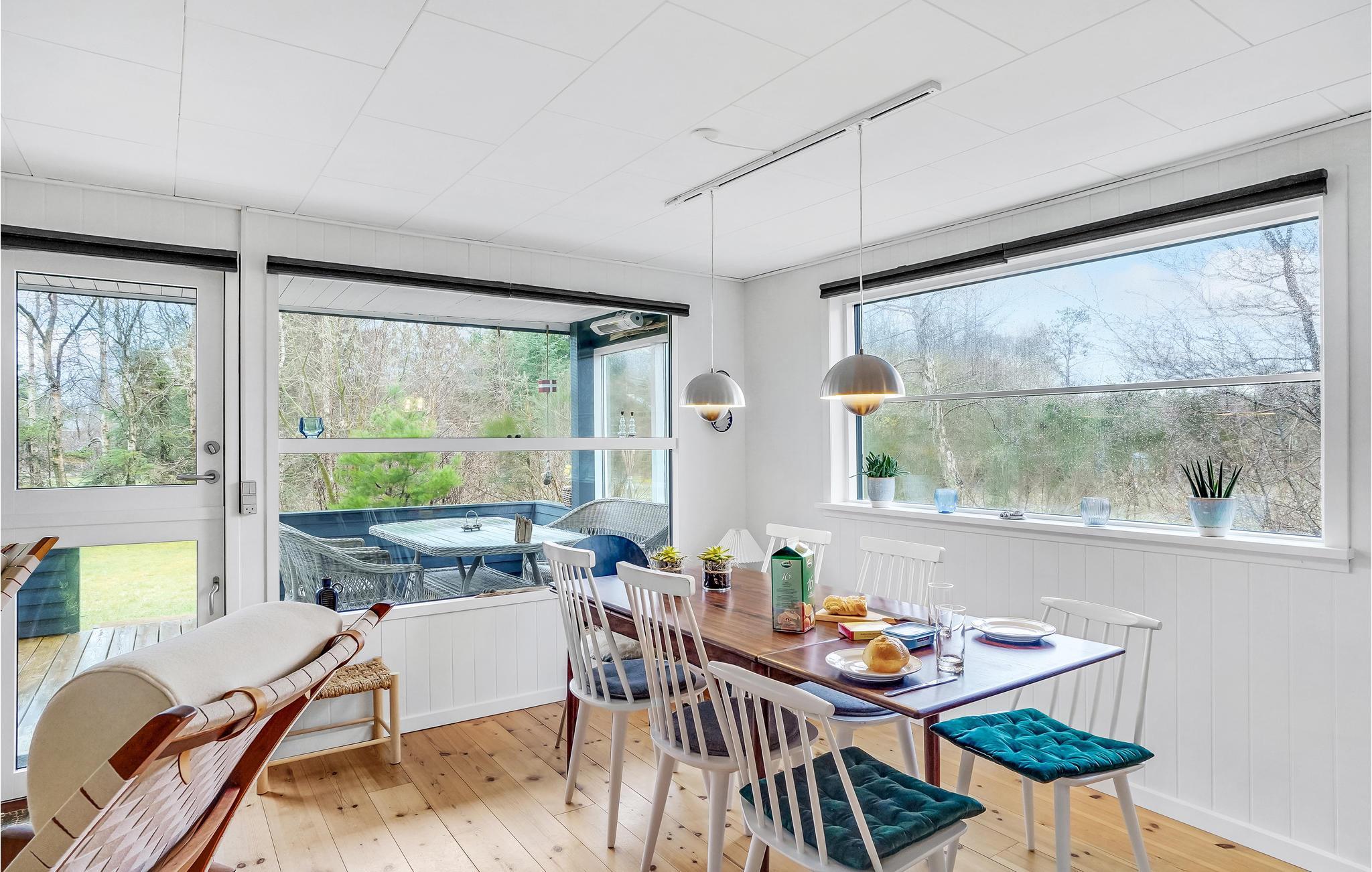 In dieser hübschen Unterkunft können Sie sich so richtig wohl fühlen. Erfreuen Sie sich an der stilvollen skandinavischen Einrichtung dieses Hauses. Durch die großen Fenster wirkt das Haus hell und freundlich. Frühstücken Sie gemeinsam mit der ganzen Famile am schönen Esstisch, während Sie den Tag planen.