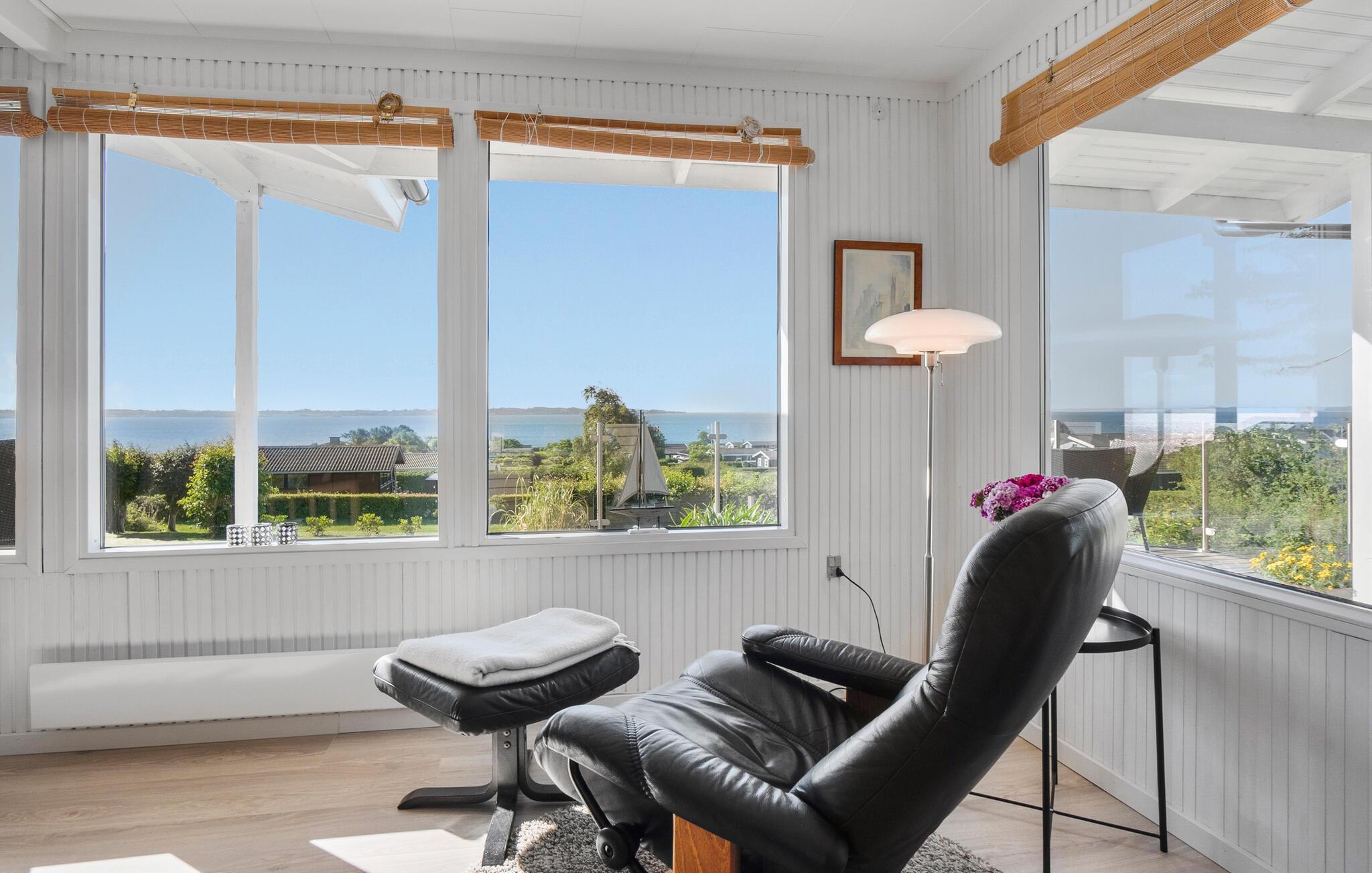 Wohnliches, hoch gelegenes Ferienhaus mit einem beeindruckenden Panorama. Sowohl von den schönen Terrassen als auch vom Wohnzimmer aus können Sie dem Verkehr von Segel- und Motorbooten auf dem Kleinen Belt folgen. Das große Wohnzimmer, das für die kühlen Tage und Abende mit einem holzgefeuerten Kaminofen ausgestattet ist, liegt neben der Wohnküche. Das Ferienhaus hat eine moderne Küche und ein modernes Badezimmer.