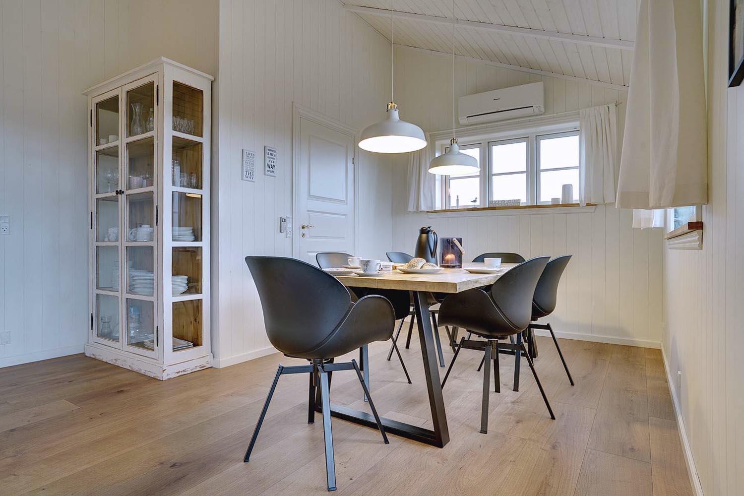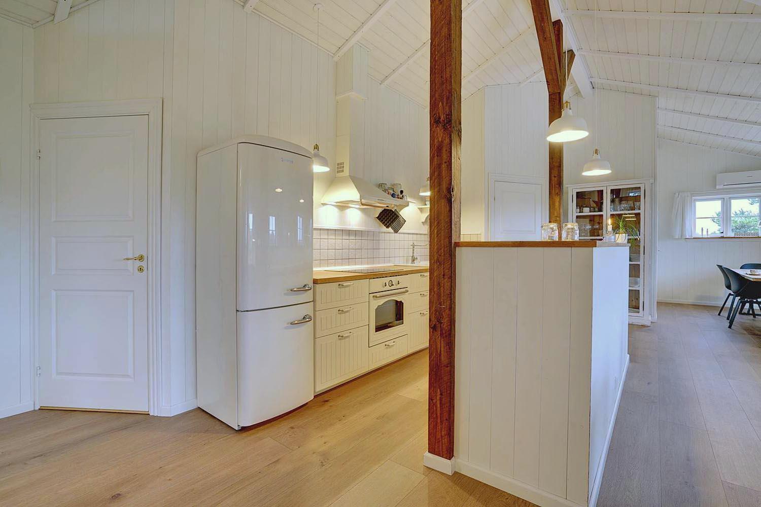 Holzhaus mit Grasdach, 2015 gebaut, gelegen auf einem offenen Naturgrundstück in ruhiger Umgebung. Gute Terrassenverhältnisse, teilweise eingezäunt und mehrere Terrassen mit Gartenstühlen. Gepflasterter Gehweg um das Haus herum. Hohe Deckenhöhe und sichtbare Balken im Haus. Das Haus ist hell und freundlicher und alter Stil sind kombiniert mit heutigen Trends. Guter Eingangsbereich mit Waschmaschine und Trockner. In diesem Teil des Hauses gibt es außerdem ein Zimmer mit Einzelbetten. Darüber hinaus gibt es 2 Schlafzimmer mit Doppelbetten sehr gemütlich eingerichtet. Die Landküche mit Spülmaschine und extra Gefrierbox liegt in offener Verbindung zur geräumigen Essecke und Stube mit Sitzgruppe, TV und Kaminofen. 2 tolle Badezimmer, das eine mit Whirlpool und das Anders mit Sauna und beide Badezimmer mit Fußbodenheizung. Großer Dachboden mit Matratzen, wo die Kinder es sich gemütlich machen können. Energiesparende und umweltfreundliche Wärmepumpe. Es gibt natürlich WIFI im Haus, so dass man auch im Urlaub auf dem Laufenden bleiben kann. Lagerraum mit 2,5m2 zur Aufbewahrung von Sachen. Ein charmantes Haus in einem bezaubernden Landhausstil.