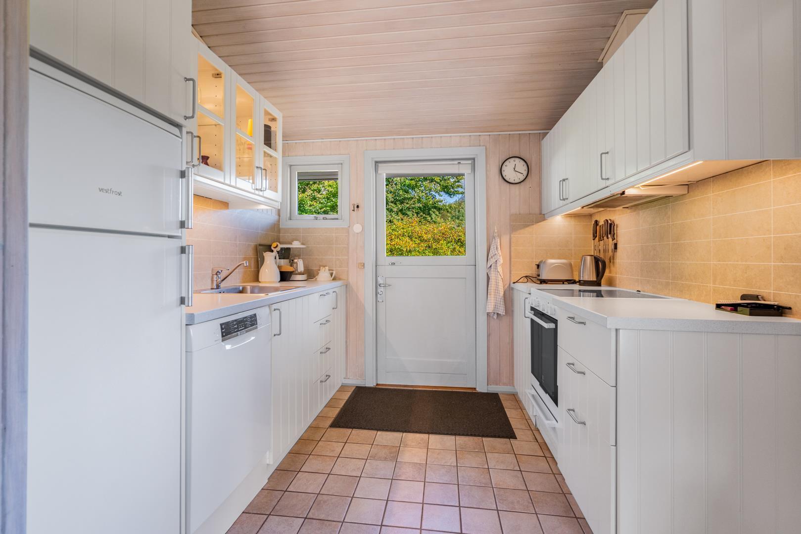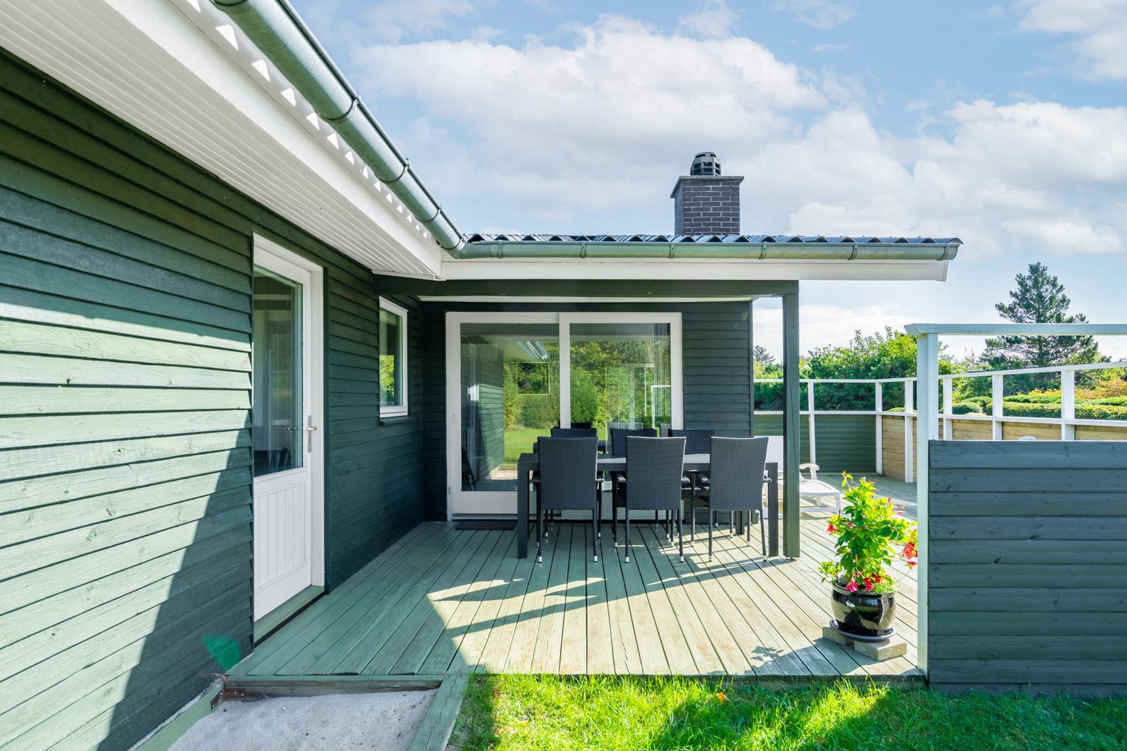 An einem kleinen Weg mit nur zwei Häusern liegt dieses gepflegte Ferienhaus. Das Haus befindet sich auf einem Naturgrund mit Platz für Ballspiele. Die Einrichtung ist durch den Besitzer geprägt und vom ansprechend möblierten Wohnraum hat man direkten Zugang zur schönen, teilweise überdachten und geschützten Holzterrasse. Neuere Küche
