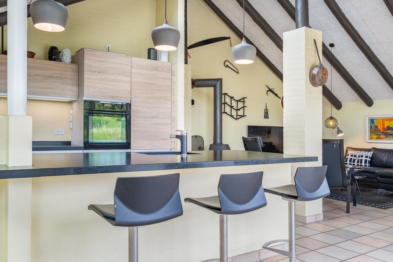 An der Westküste in Henne Strand liegt dieses charmante Ferienhaus auf einem großen Naturgrundstück. Während Sie das Essen zubereiten, können die Kinder auf den Barhockern in der schönen Küche zeichnen. Die Küche öffnet sich zu einem gemütlichen Fernsehzimmer und einem hellen Wohnzimmer mit großen Fenstern, die einen fantastischen Blick auf die umliegende Natur bieten. Das Badezimmer ist mit Fußbodenheizung ausgestattet. Mit drei schönen Schlafzimmern, darunter zwei mit Doppelbetten und eines mit einem Etagenbett, bietet es Platz für 6 Personen. Zusätzlich gibt es einen großen Schlafboden, der mit Spielzeug und Spielen gefüllt ist, perfekt als zusätzlicher Raum, wenn Sie dieses schöne Ferienhaus in Henne Strand für Ihren nächsten Familienurlaub buchen.