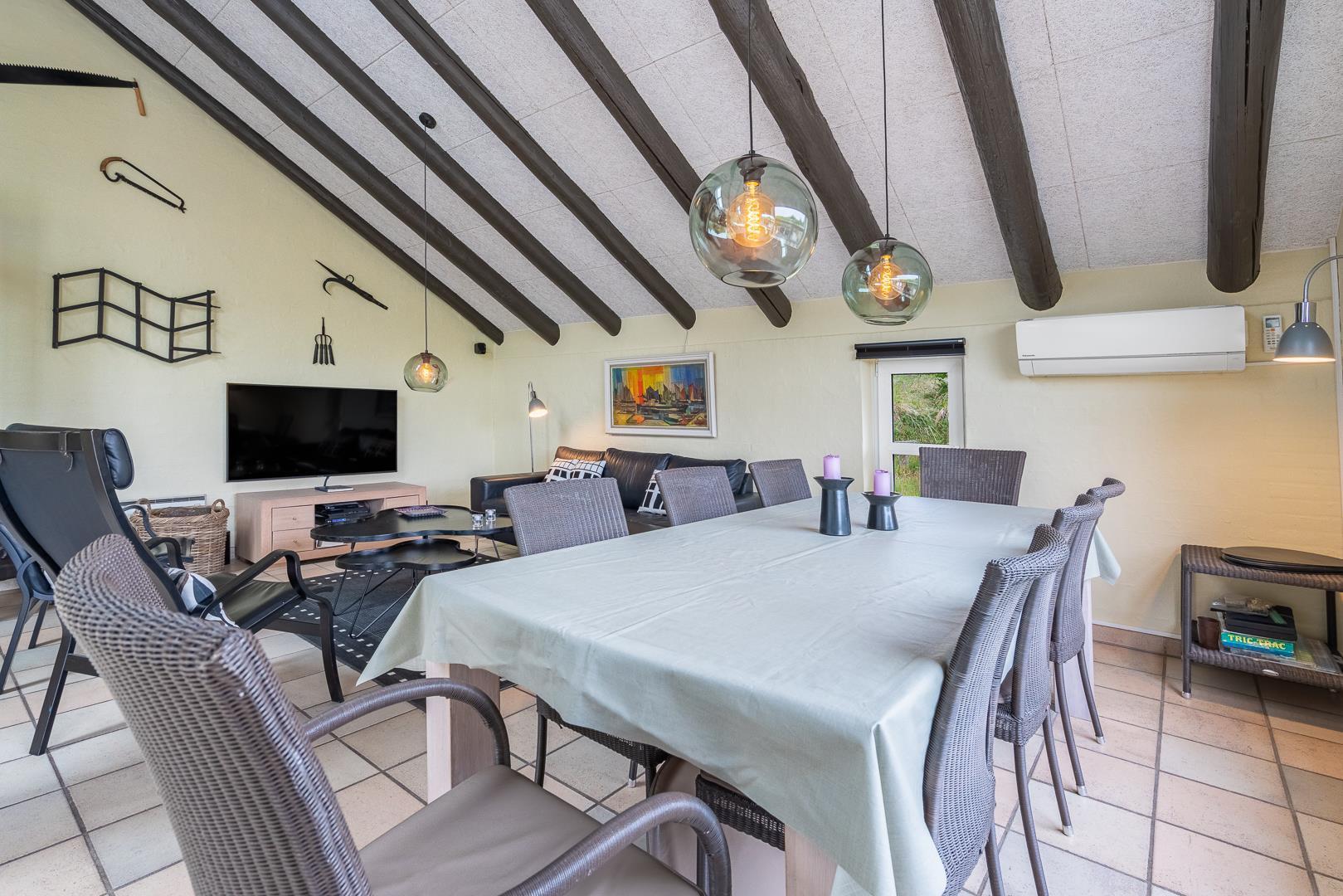 Draußen finden Sie eine große, teilweise überdachte Terrasse – hier gibt es gute Möglichkeiten, die warmen Sonnenstrahlen zu genießen oder einen schattigen Platz zu finden, wenn es zu heiß wird. Ein schönes Ferienhaus für die Familie in Henne Strand – ideal gelegen, nahe sowohl dem Strand als auch dem Stadtzentrum.