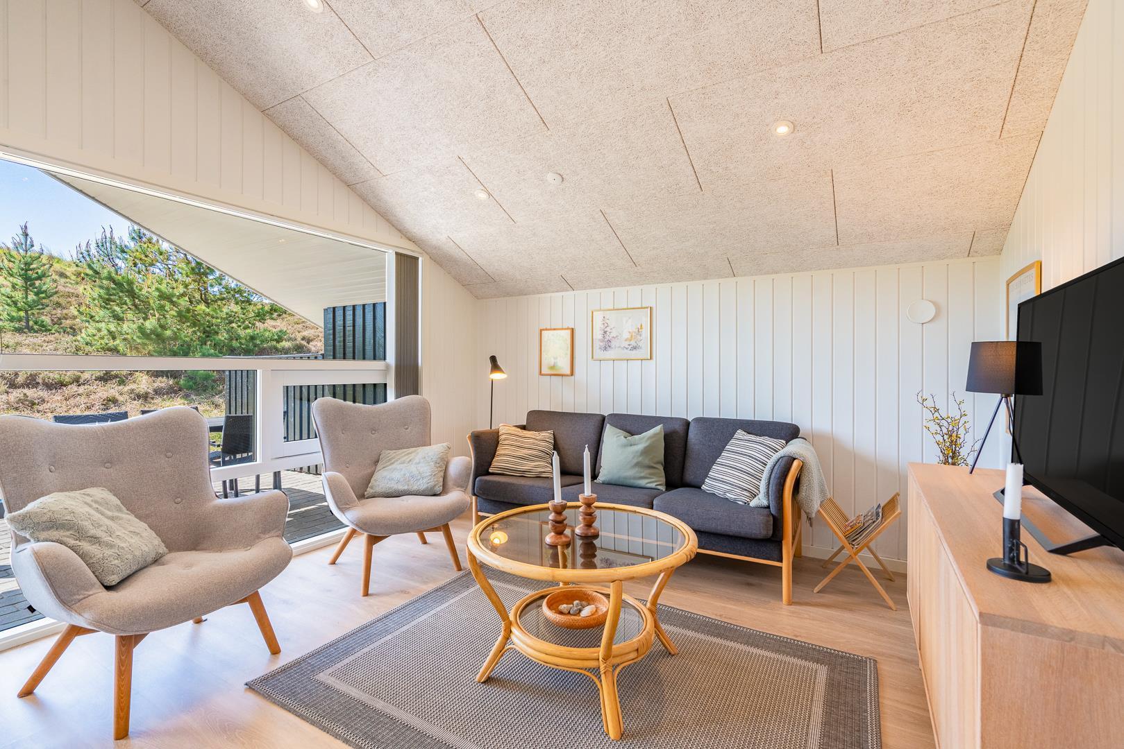 Modernes Ferienhaus in Henne Strand mit Kamin und überdachter Terrasse, ideal für entspannte Tage in der Natur.