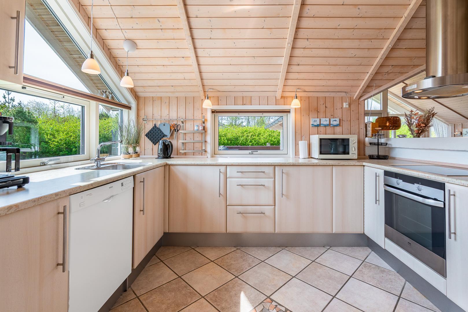 Das Ferienhaus liegt auf einem gepflegten Grundstück in der Nähe der wunderschönen Natur der Blåbjerg Plantage. In den Sommermonaten (von Ostern bis Ende September), wenn der Kaufmann des Campingplatzes geöffnet hat, sind es nur 250 Meter bis zu Einkaufsmöglichkeiten. Außerhalb dieser Zeit kannst du mit dem Fahrrad oder Auto ins Stadtzentrum fahren, das nur 3 km entfernt liegt.