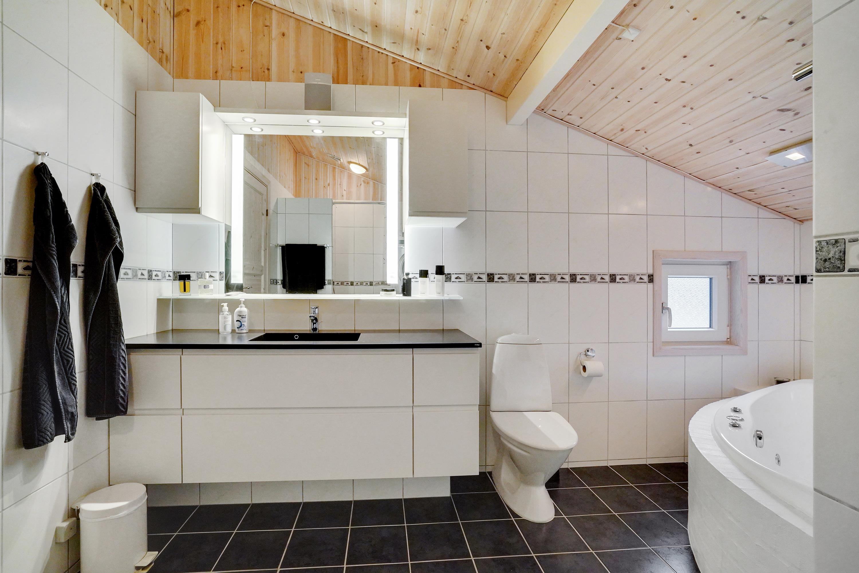 Das Haus bietet auch ein Badezimmer, eine Gästetoilette und einen Abstellraum.