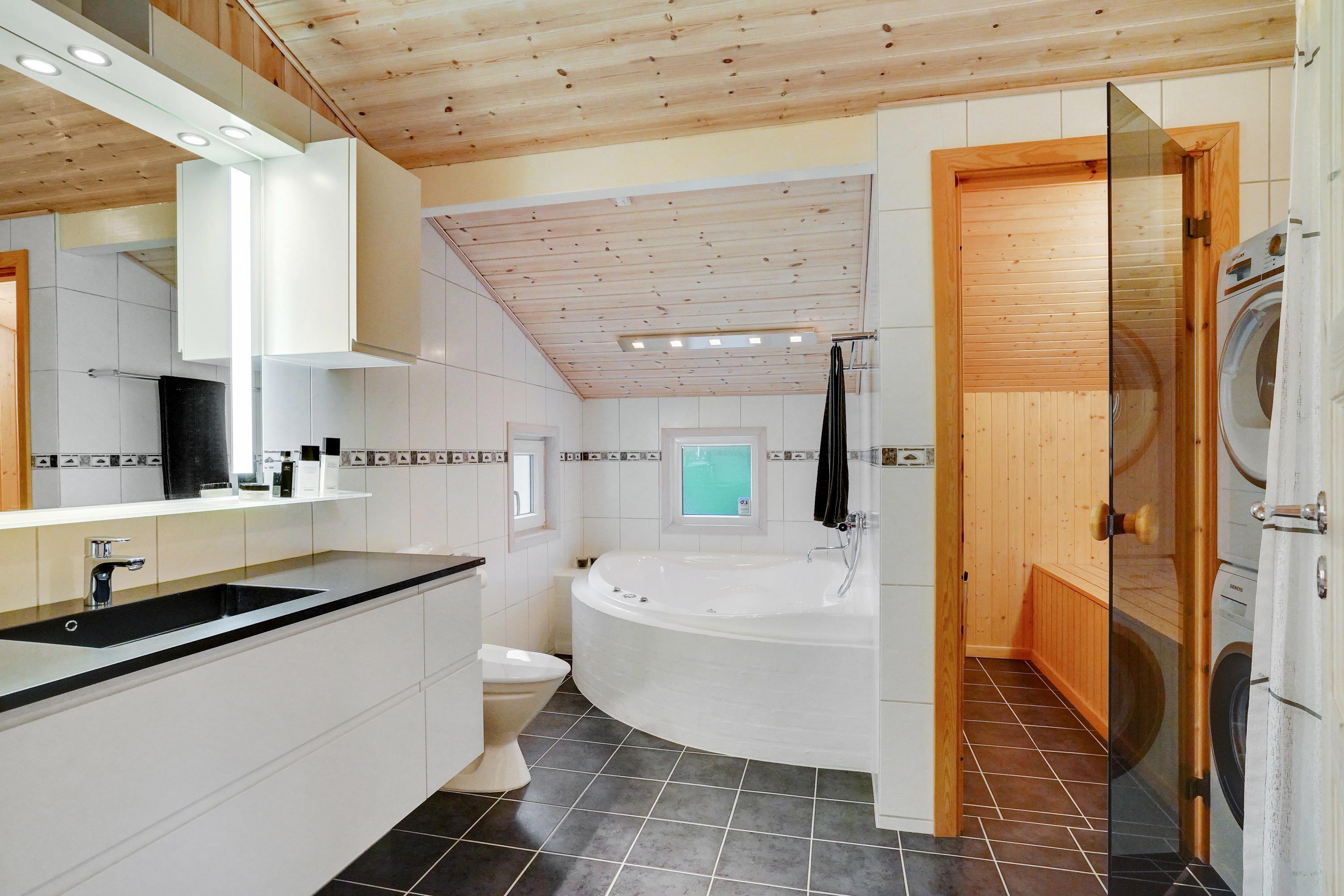 Das Licht strömt durch große Glasfronten in dieses schöne Ferienhaus in Henne. Das Haus wurde im Jahr 2020 modernisiert und verfügt über einen Whirlpool, eine Sauna, einen Kaminofen und viel Gemütlichkeit, sodass Sie Ihre Lieben zu einem Urlaub mit vielen unvergesslichen Erlebnissen einladen können.