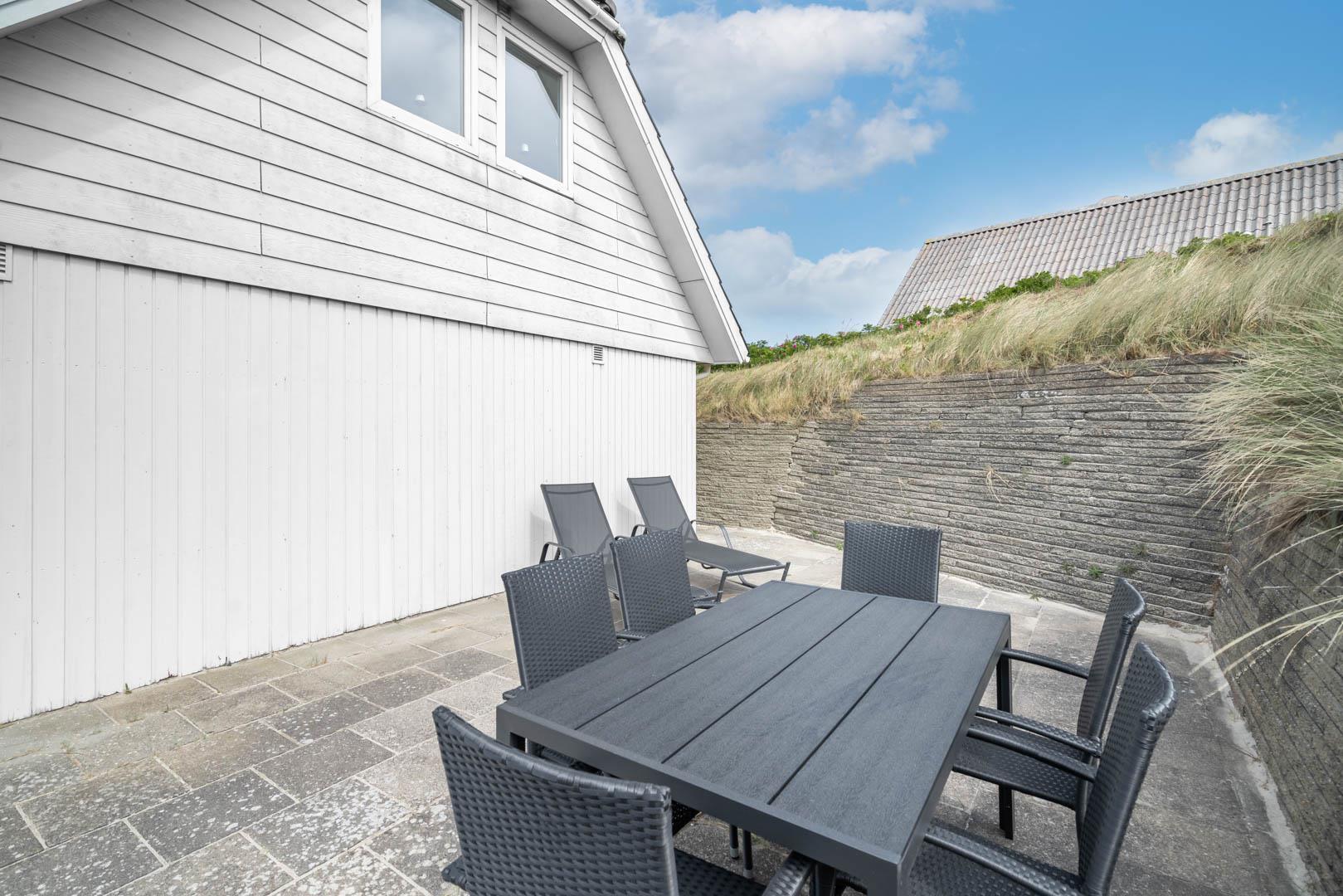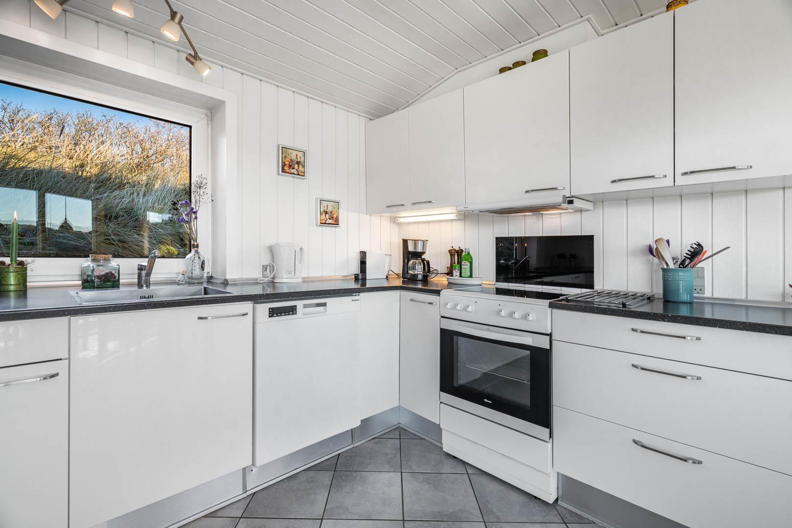 Das Haus verfügt über insgesamt drei Schlafzimmer, die alle mit Doppelbetten ausgestattet sind. Das Haus liegt auf einem ruhigen Dünengrundstück mit einer großen, teilweise überdachten Terrasse. Der Ort ist nur einen kurzen Spaziergang von hier entfernt, so dass es nie weit zur 'Gammeldaws' Eiswaffeln und 'Stjerneskud' mit frischem Fisch gibt. In unmittelbarer Nähe finden Sie auch dichte Waldgebiete, geschützte Heideflächen und hügelige Dünengebiete sowie gepflegte Golfplätze - und dann natürlich den langen, breiten Strand, an dem der kreideweiße, feine Sand zum Spielen und Entspannen einlädt.