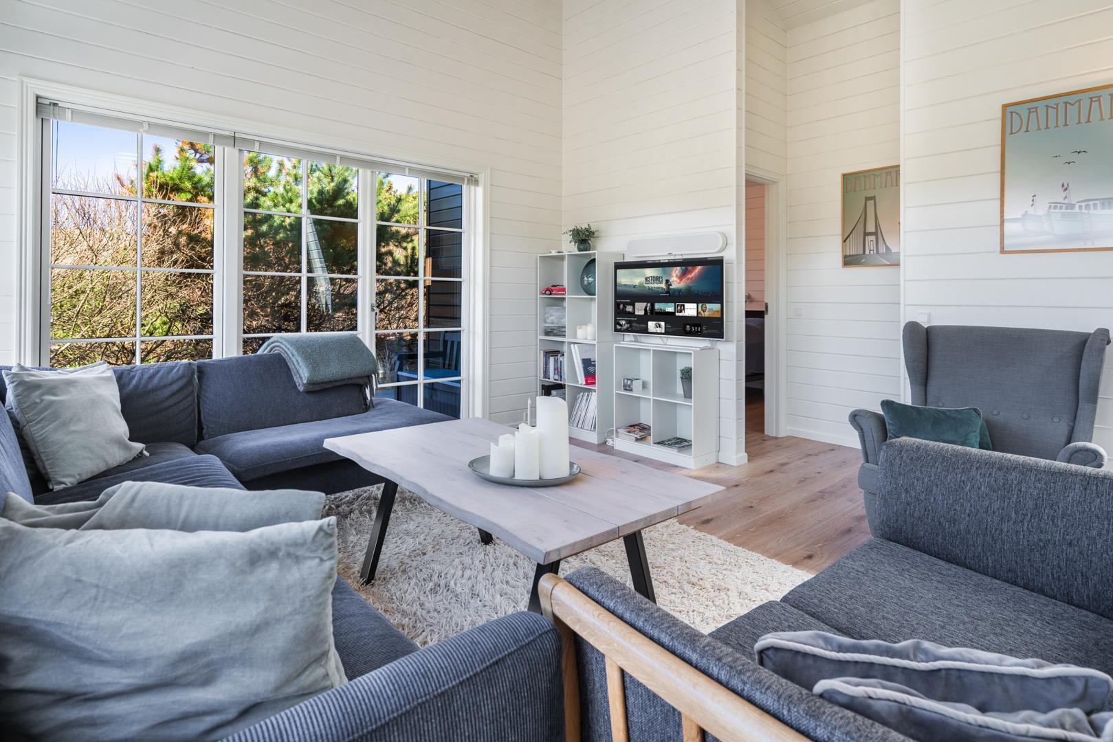 Ein paar hundert Meter vom Strand und der Henne Mølle Å entfernt lädt dieses neuere Ferienhaus zu einem fantastischen Urlaub für Sie und Ihre Familie ein. Das Haus bietet eine moderne, offene Einrichtung mit hellen Räumen und hohen Decken. Das malerische Gelände ist abgelegen und die Umgebung ist ruhig. Wenn Sie Ruhe und die Möglichkeit suchen, Gedanken und Kreativität zu entfalten, ist dieser Ort gut geeignet.