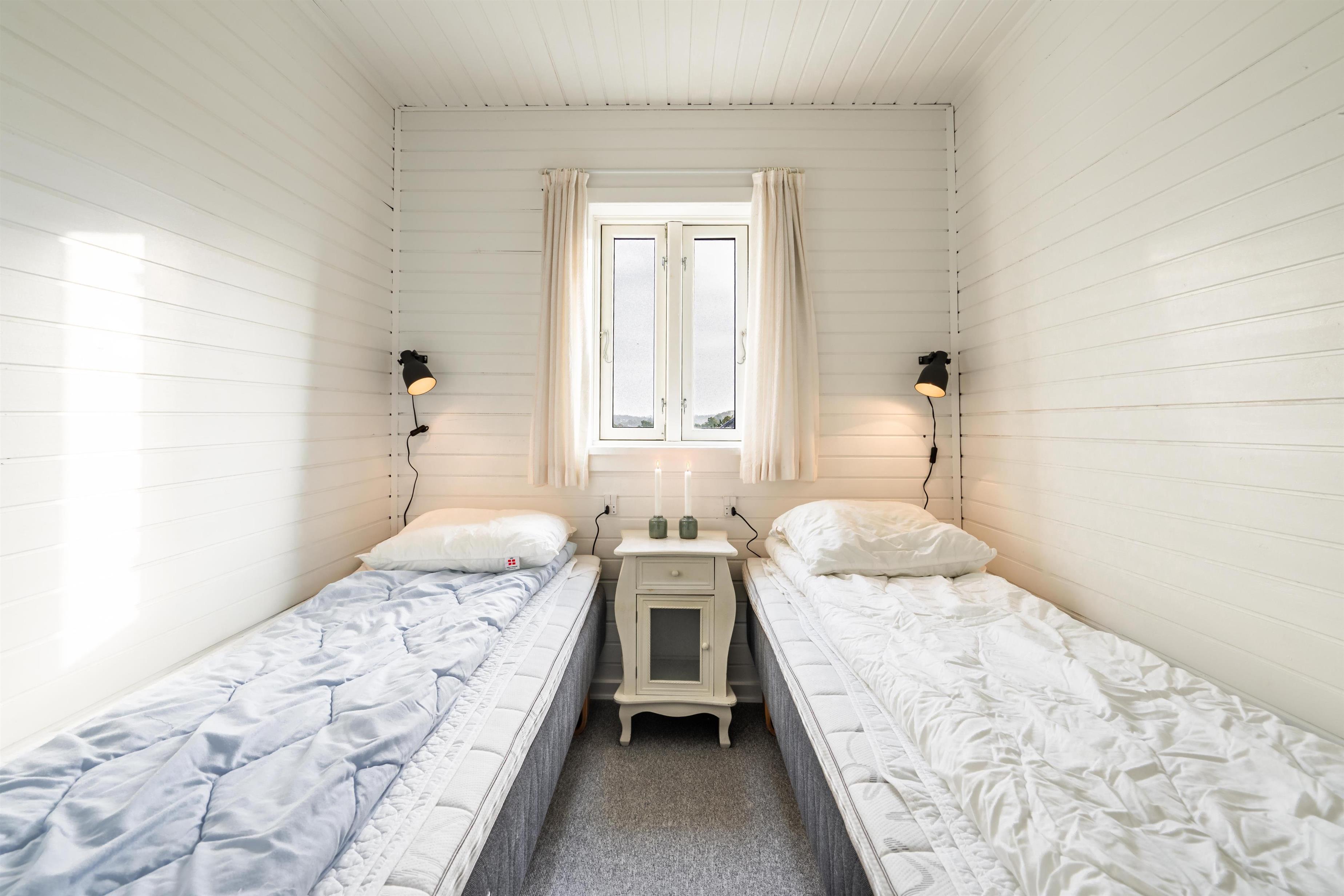 Bettengrösse: 1 Dobbeltbett 140 x 200 cm + 2 Einzelbetten 80 x 200 cm.