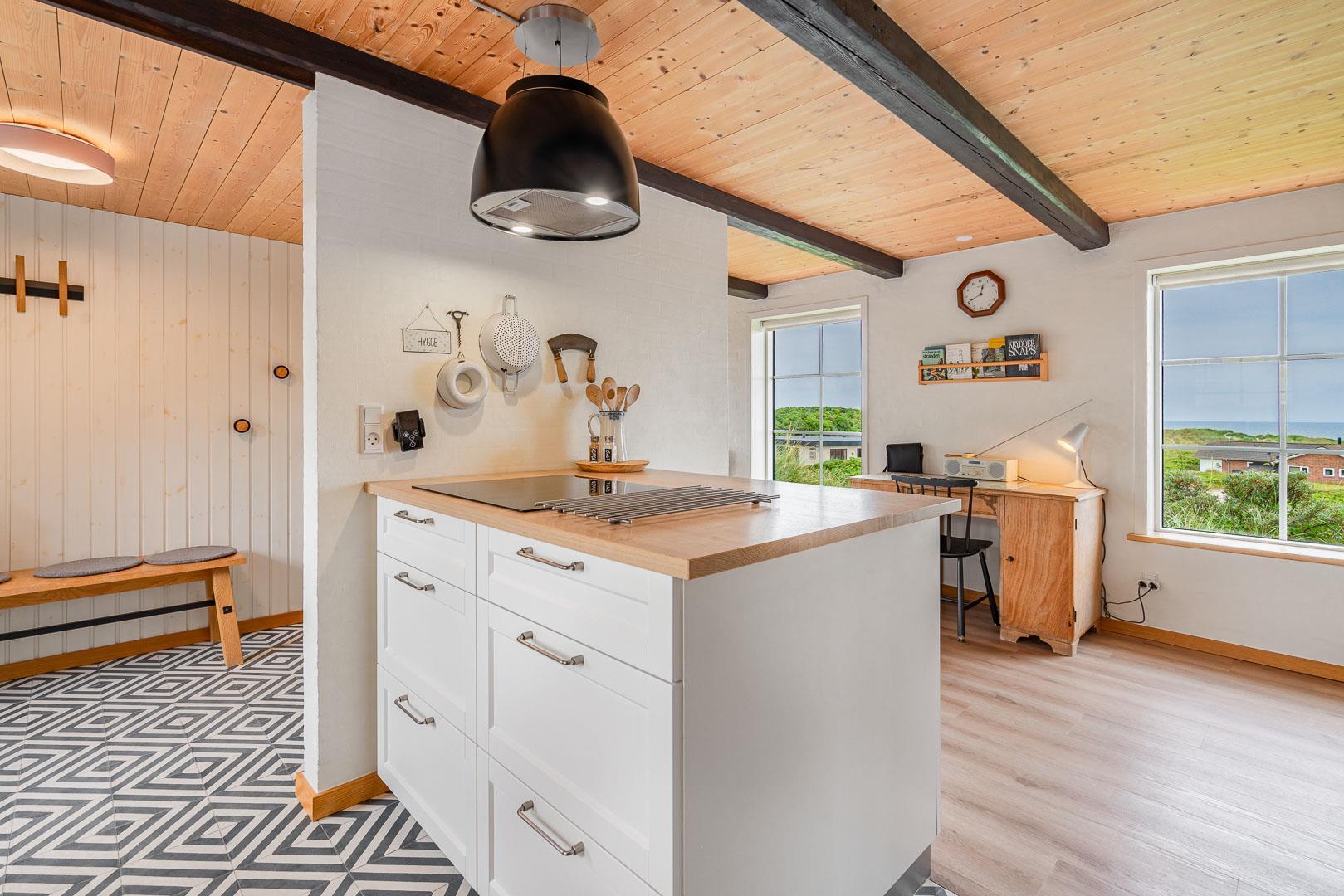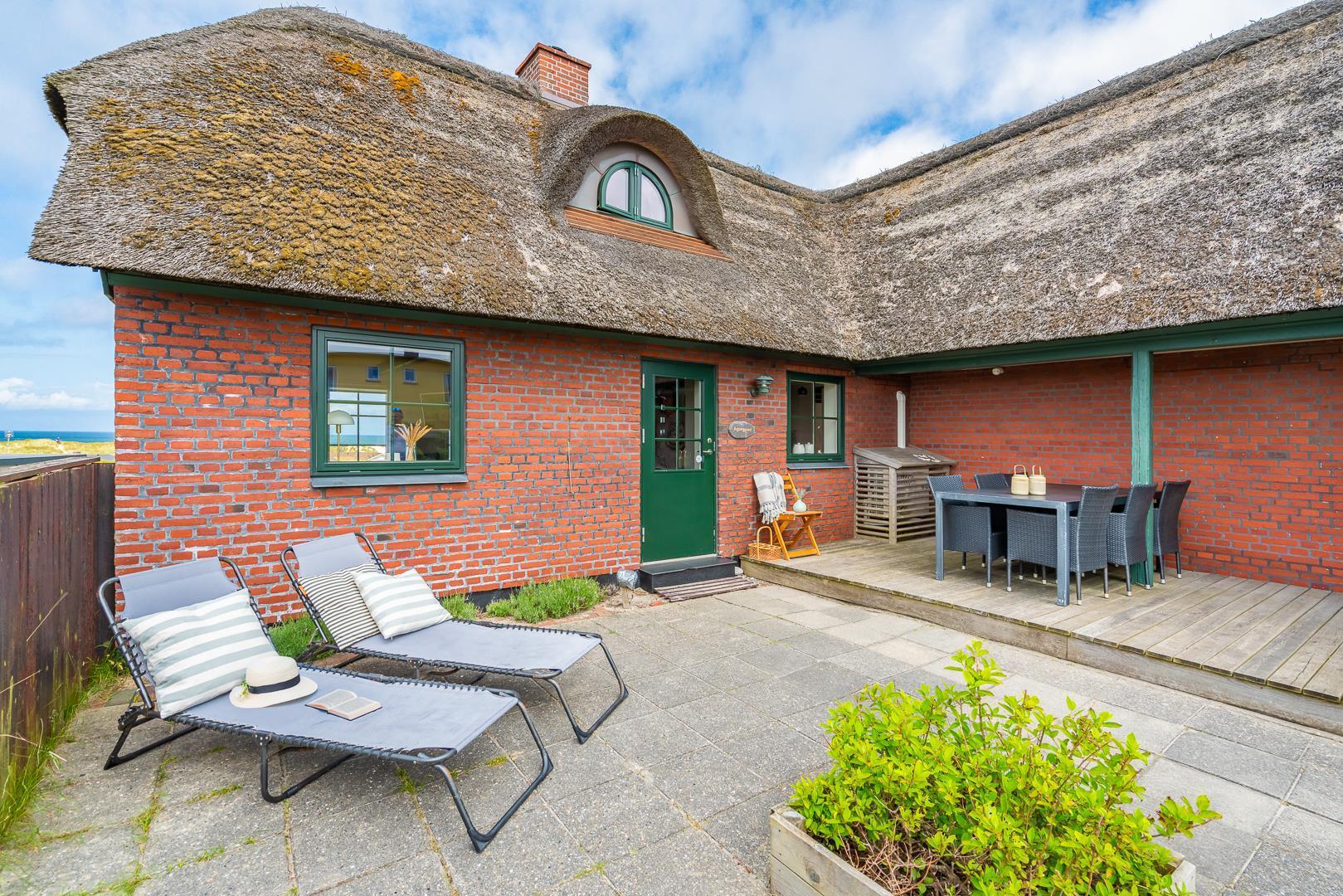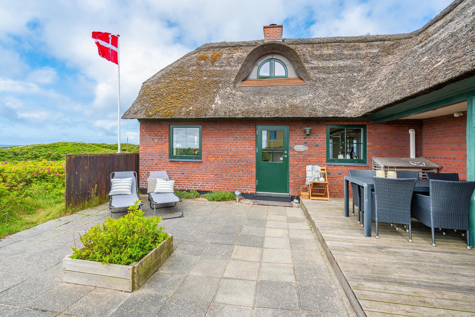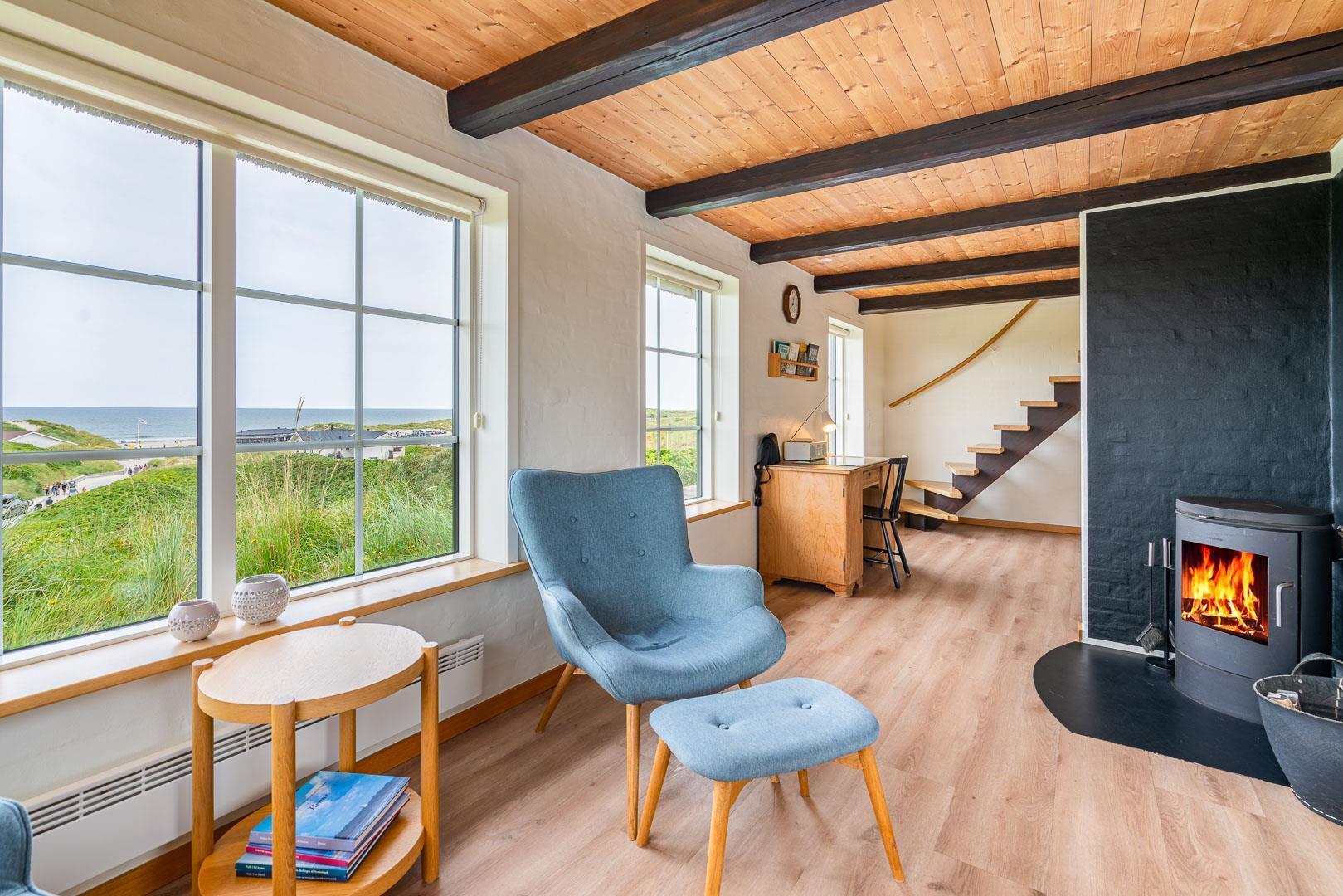 Das Ferienhaus wurde kontinuierlich behutsam renoviert – und behält so seine besondere Geschichte und wirkt nun hell und gemütlich. Es handelt sich um ein Ferienhaus aus dem Jahr 1933, das immer noch derselben Familie gehört. Aufgrund seiner einzigartigen Lage diente es während des Zweiten Weltkriegs als Aussichtspunkt und ist damit eines der ältesten erhaltenen Ferienhäuser in Henne Strand. Mit seiner Lage auf einem Dünengipfel in 36 Metern Höhe sind Sie nur 100 Meter vom Strand und 200 Meter vom Stadtzentrum entfernt. Das Meer kann von allen Schlafzimmern aus genossen werden, aber am atemberaubendsten ist das Erlebnis im ersten Stock, wo die Dachfenster vom Boden bis zur Decke reichen. Auch im gemütlichen Wohn- und Esszimmer erleben Sie die fantastische Aussicht. Hier finden Sie auch den perfekten Ort, um mit einem guten Buch vor dem Holzofen zu entspannen. Mit zwei Badezimmern und einer schönen, herrlichen Küche in offener Verbindung zum Wohnzimmer sowie einer sonnigen, windgeschützten Terrasse ist dies der ideale Ort für einen unvergesslichen Urlaub, den man einfach selbst erleben muss.