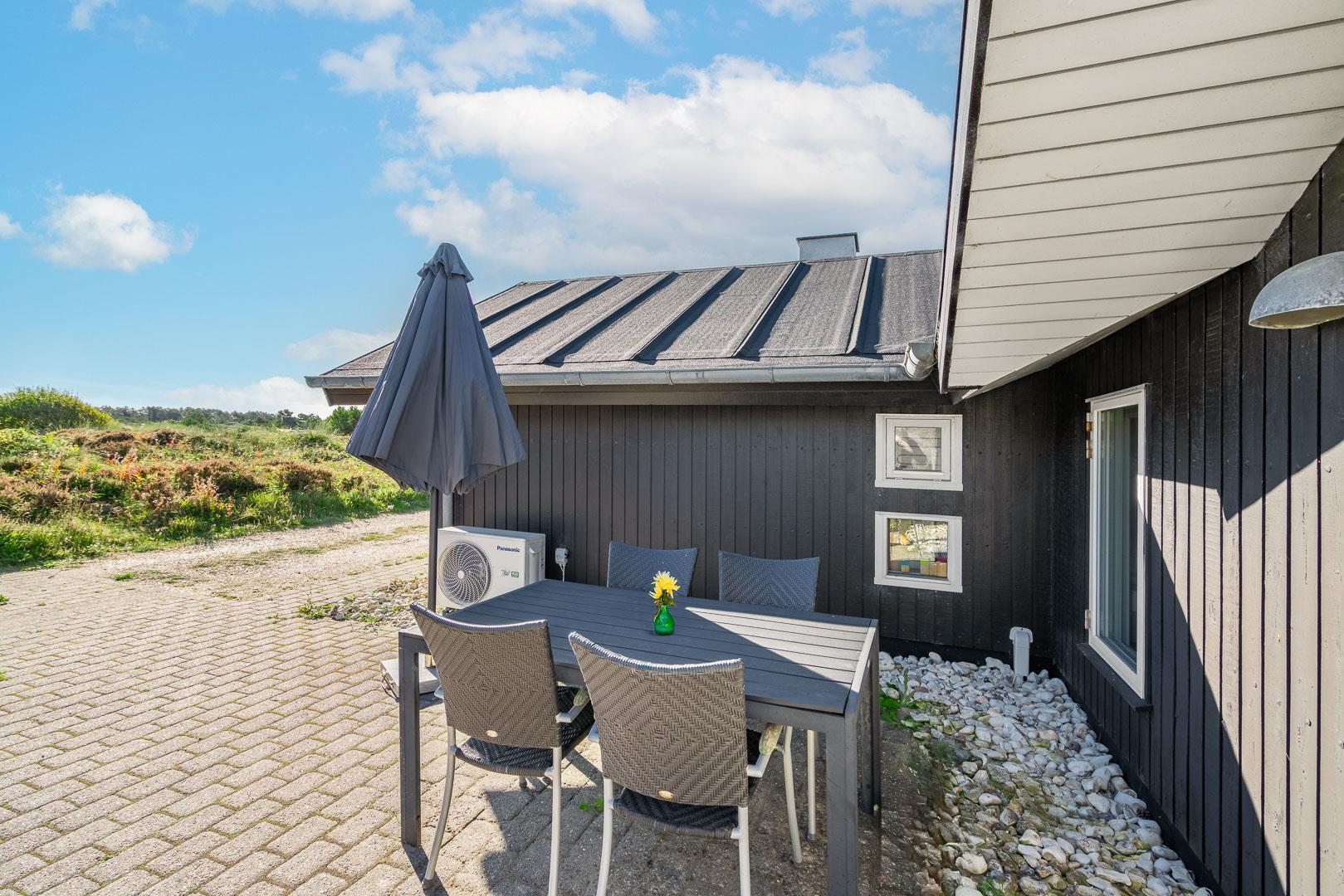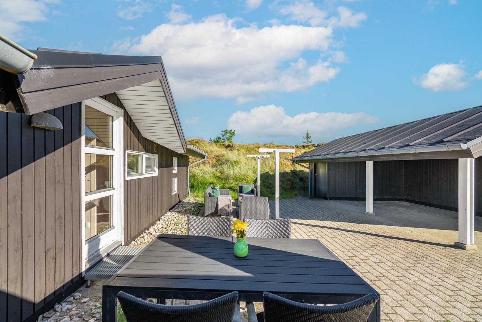 Dieses schöne und sehr gut gepflegte Ferienhaus mit Carport liegt auf einem prachtvollen und ungestörten Naturgrundstück am Ende einer Sackgasse vom Hjelmevej. Das Haus ist laufend renoviert, ist charmant und geräumig und wurde mit Liebe eingerichtet. Es gibt eine schöne großeTerrasse, die teilweise überdacht ist und wo man immer eine windgeschützte Ecke finden kann. Großes tolles Badezimmer mit Whirlpool und Sauna. Es gibt 3 geräumige Schlafzimmer. Gut ausgestattete Küche mit extra Gefrierer und Spülmaschine, die in offener Verbindung mit der toll möblierten Stube liegt, die auch über eine Schlafnische verfügt. Es gibt eine große Fensterfront und viele Fenster, die einen schönen Lichteinfall im Haus garantieren. Eingang mit Garderobe. Ein Haus, wo man Ruhe und Frieden findet kombiniert mit Stil und Gemütlichkeit.