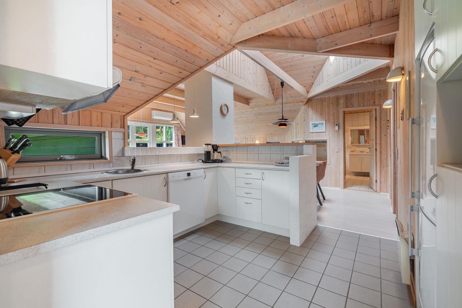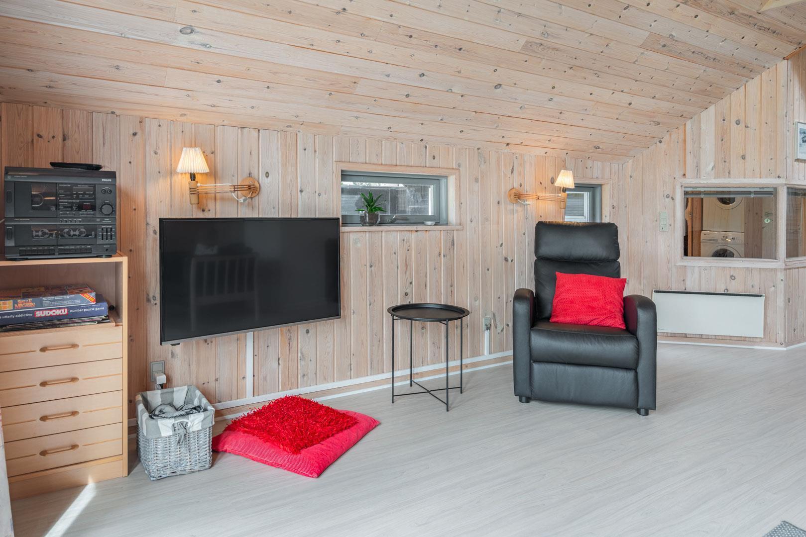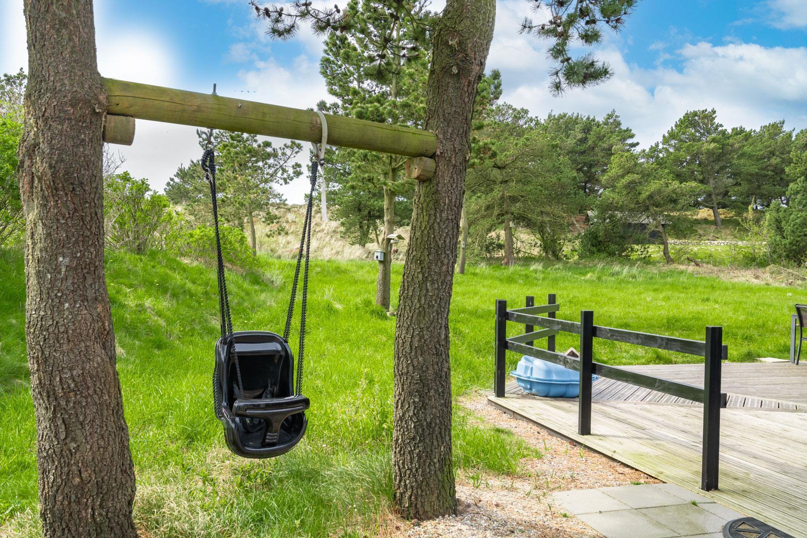 Draußen kann der Sommer auf der großen Holzterrasse in vollen Zügen genossen werden, die mit Gartenmöbeln und Sonnenliegen ausgestattet ist. Hier können Sie eine gute Tasse Kaffee genießen und die schöne Natur betrachten, während die kleinen Feriengäste die Sandkiste und die Babyschaukel lieben werden. Mit einer Lage, die ruhig und abgeschieden genug ist, um Entspannung zu gewährleisten, aber dennoch nah genug, um das Café- und Einkaufsleben in Henne Strand sowie den herrlichen weißen Sandstrand zu genießen, ist dieses Ferienhaus wirklich ein wunderbarer Ort für einen erholsamen und angenehmen Urlaub.