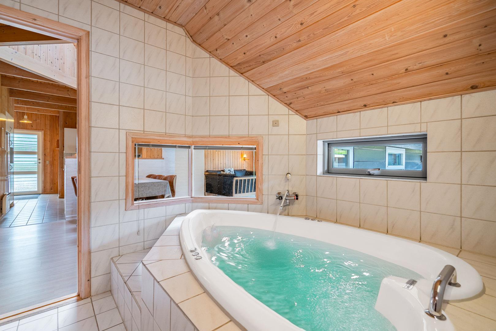 Mit zwei geräumigen Schlafzimmern, die jeweils mit 160 cm breiten Doppelbetten ausgestattet sind, sowie einem kinderfreundlichen Zimmer mit einem Etagenbett und einem Einzelbett, bietet das Haus Platz für die ganze Familie. Das große Badezimmer bietet Wellness-Erlebnisse mit Sauna und Whirlpool, während im Ferienhaus auch ein zusätzliches WC vorhanden ist.