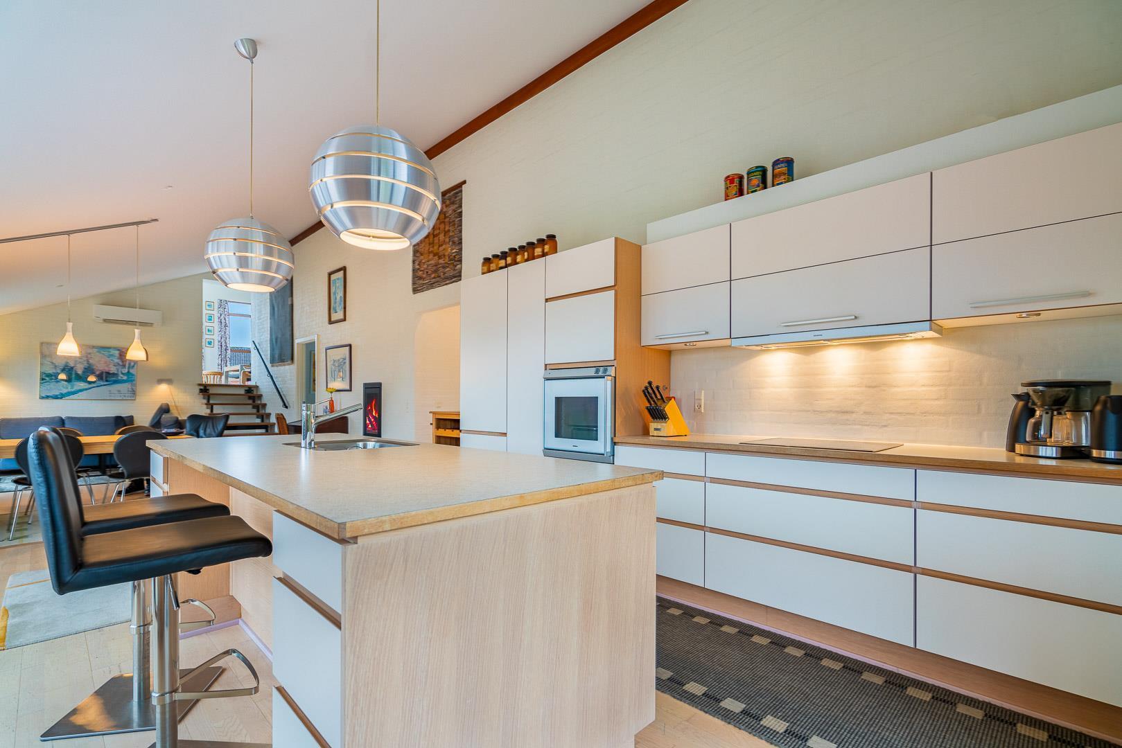 Dieses Ferienhaus bei dem besonderes Augenmerk auf persönlichkeit gelegt wurde, befindet sich auf einem schönen Naturgrundstück in ruhiger Lage, nahe dem Meer und dem Ortskern. Es verfügt über Badezimmer mit Dusche und Fussbodenheizung. Der schöne, helle Essbereich ist mit der grossen und gut ausgestatteten Küche kombiniert. Vom erhöhtem Wohnzimmer hat man eine schöne Aussicht über die Umgebung. Alle Schlafräume verfügen über gute Matratzen und haben direkten Zugang zur Terrasse. Rund um das Haus laden schöne Terrassen zum Sonnen ein. In diesem Superhaus' werden Sie einen unvergesslichen Urlaub verbringen - zu jeder Jahreszeit!
