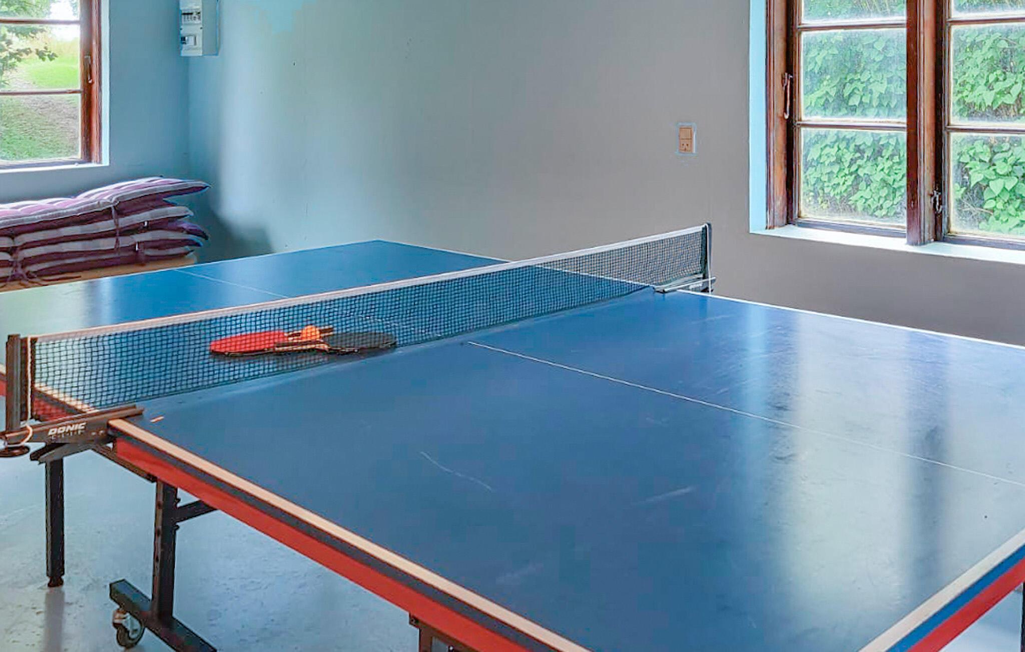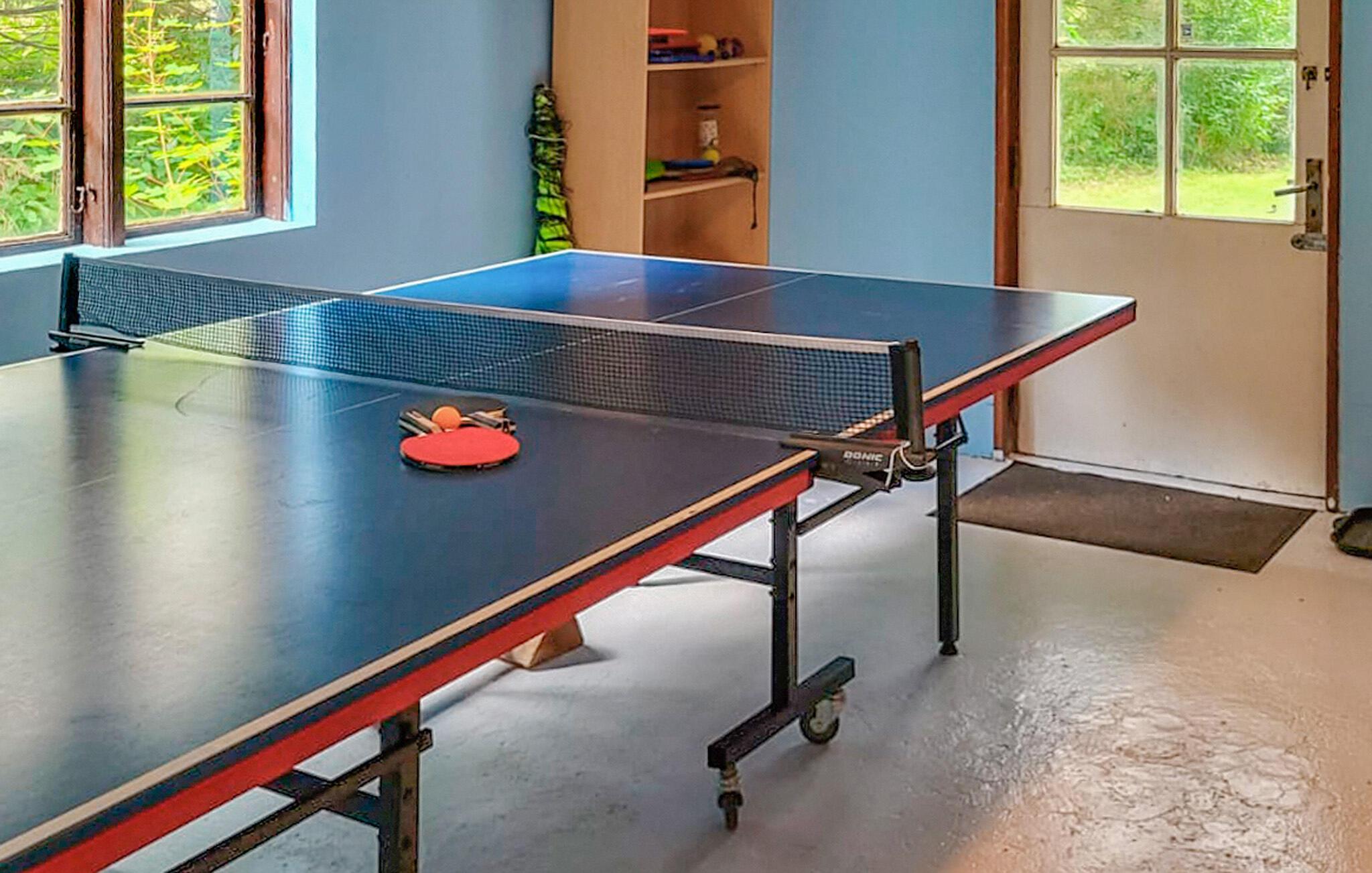 Dieses einfache, aber gemütliche Ferienhaus in Bønnet, nahe Hesnæs, bietet Ihnen einen ruhigen Rückzugsort inmitten der bezaubernden Natur auf der Insel Falster. Hier können Sie sich in entspannter Atmosphäre erholen und die Ruhe der Umgebung genießen. In Ihrem Ferienhaus finden Sie alles Notwendige für einen erholsamen Aufenthalt vor. Im Wohnbereich sorgt der Kaminofen für eine angenehme Stimmung. Machen Sie es sich auf dem Sofa gemütlich, spielen Sie Karten oder genießen Sie die gemeinsame Zeit. Die offene, gut nutzbare Küche lädt dazu ein, Mahlzeiten zuzubereiten, die Sie anschließend im Essbereich genießen können. Für Unterhaltung sorgt der vorhandene Tischtennistisch, der zu spannenden Matches einlädt.