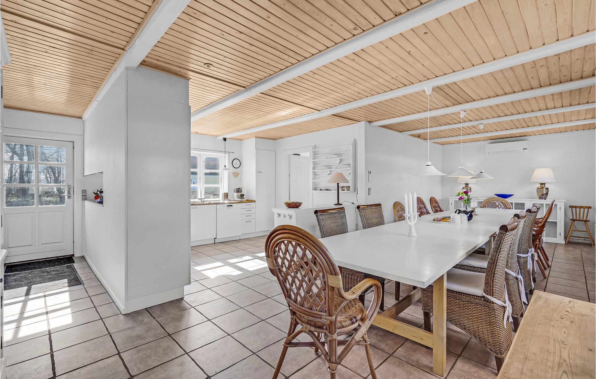 Dieses große und schöne Ferienhaus liegt auf dem Gutshof Hjortholm unweit von einem Wald, der unberührten Natur und einem nicht eingezäunten See. Das Haus ist sehr gut für mehrere Familien geeignet, da es mit einer großen, schönen Küche, die zum Wohnraum offen ist und zwei Badezimmern eingerichtet ist. Eines der Badezimmer verfügt über eine doppelte Duschkabine. Zum Haus gehört eine offene Terrasse, auf der die ganze Familie die Sonne und die schöne Natur genießen kann. Es sind 7 km zum Langeland Golfklub mit 18 Löchern im Süden der Insel. Ein schönes Haus für Ihren Urlaub zu jeder Jahreszeit.