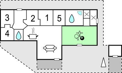 Sehr schön gestaltetes Ferienhaus, bei dem an alle Einzelheiten gedacht wurde. Die große, schöne Küche macht es möglich, in der Küche essen zuzubereiten, während der Rest der Familie im Wohnzimmer Spaß hat oder im Aktivitätsraum Billard spielt. Via Bluetooth können Sie mit Ihrem Smartphone die Musikanlage des Hauses nutzen und Ihre Lieblingsmusik hören. Von Wohnzimmer und Aktivitätsraum haben Sie direkten Zugang zur 140 m² großen Terrasse, auf der Sie in vollen Zügen die Sonne genießen können. Am Haus gibt es eine Hütte für Fahrräder o.ä. und außerdem viel Platz für Aktivitäten im Freien. Im Garten gibt es einen Unterschlupf, den Sie im Sommer als alternativen Schlafplatz nutzen können, wenn Sie im Freien schlafen möchten. Nur wenige hundert Meter vom Haus entfernt befindet sich ein schöner Golfplatz für Anfänger und Fortgeschrittene, Sie haben dort freien Eintritt auf dem Anfängerplatz (Ausrüstung kann geliehen werden).