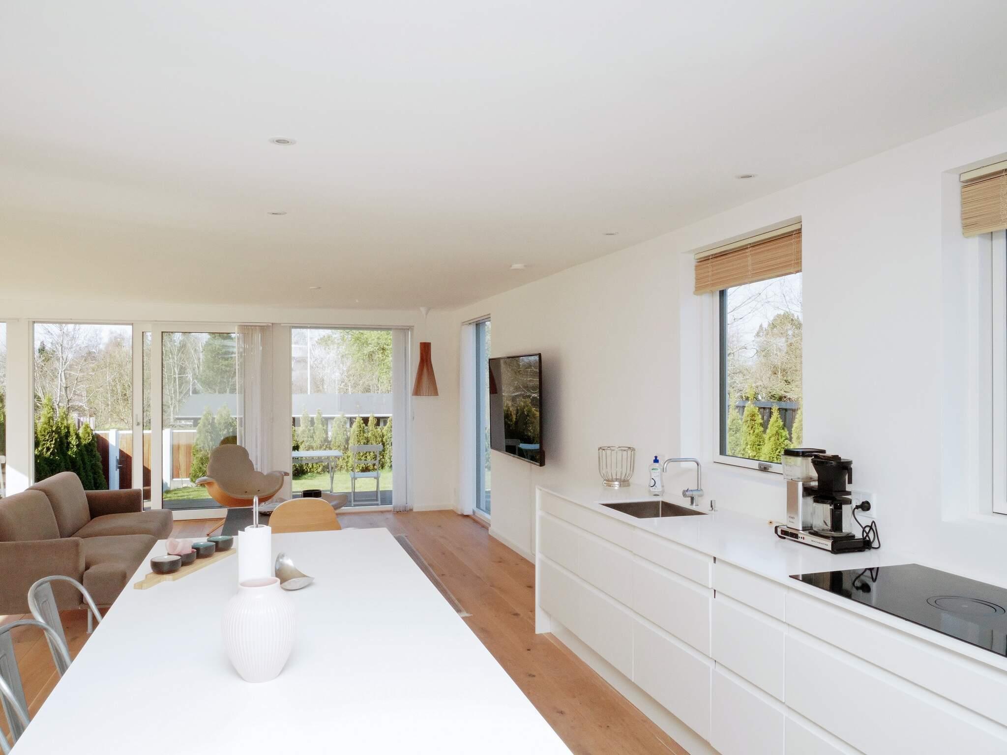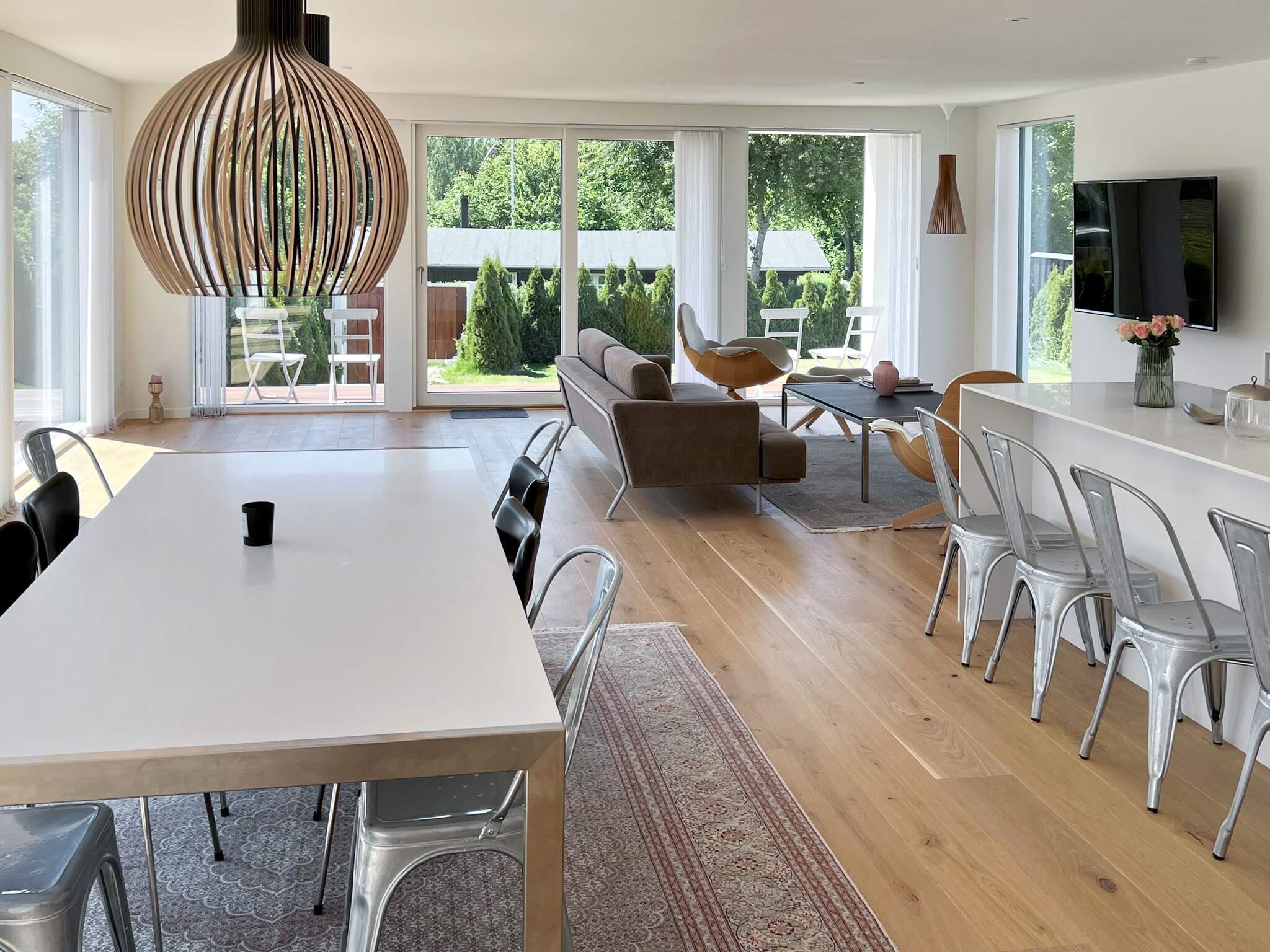 Exklusives Ferienhaus mit beheiztem Außenpool für unvergessliche Sommertage in Hornbæk. Das Haus liegt in einem beliebten Urlaubsgebiet und bietet modernen Komfort in hellem skandinavischem Stil. Das Herzstück des Hauses ist der großzügige, offene Küchen- und Wohnbereich, ausgestattet mit Fernseher und Chromecast zum Streamen, Bluetooth-Lautsprecher und WLAN. Hier können Sie wunderbar gemeinsam kochen, essen, spielen oder entspannen. Die Küche ist bestens ausgestattet und verfügt über ein Induktionskochfeld mit integrierter Dunstabzugshaube, Backofen, großen Kühlschrank mit Gefrierfach, Kaffeemaschine und Geschirrspüler. Es gibt drei Schlafzimmer mit Doppelbetten sowie zwei moderne Badezimmer mit Dusche, Fußbodenheizung und einem kombinierten Waschtrockner.