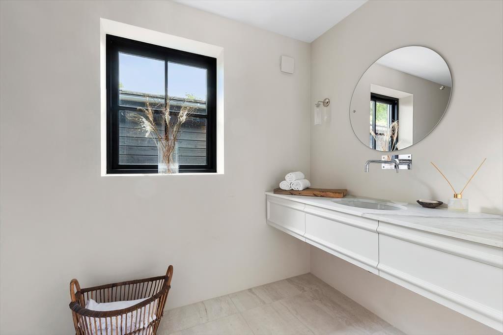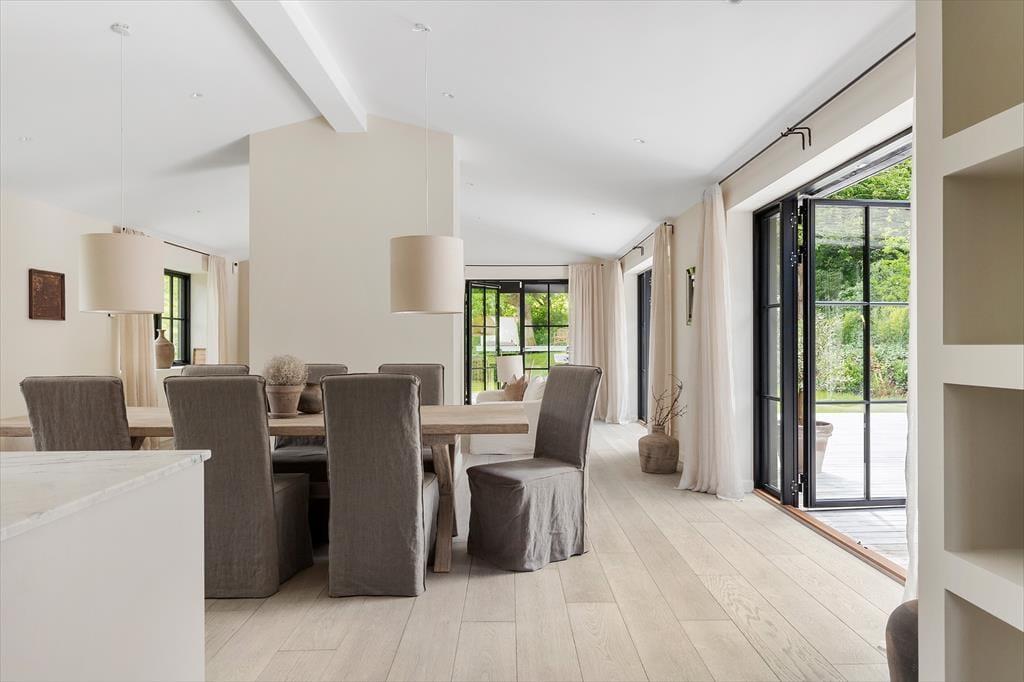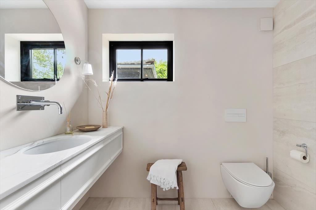 Jedes Detail wurde sorgfältig durchdacht – vom exklusiven Bodenbelag und edlen Fliesen über hochwertige Einbaugeräte bis hin zu maßgeschneiderten Vorhängen. Große Fenster und viel Tageslicht schaffen eine offene, einladende Atmosphäre, während die luxuriöse Ausstattung für ein durchgängig stilvolles Ambiente sorgt.